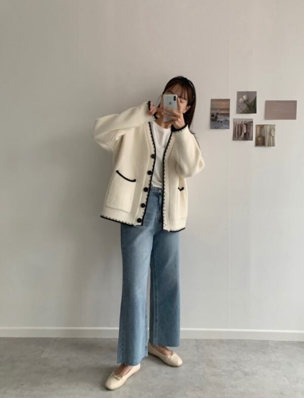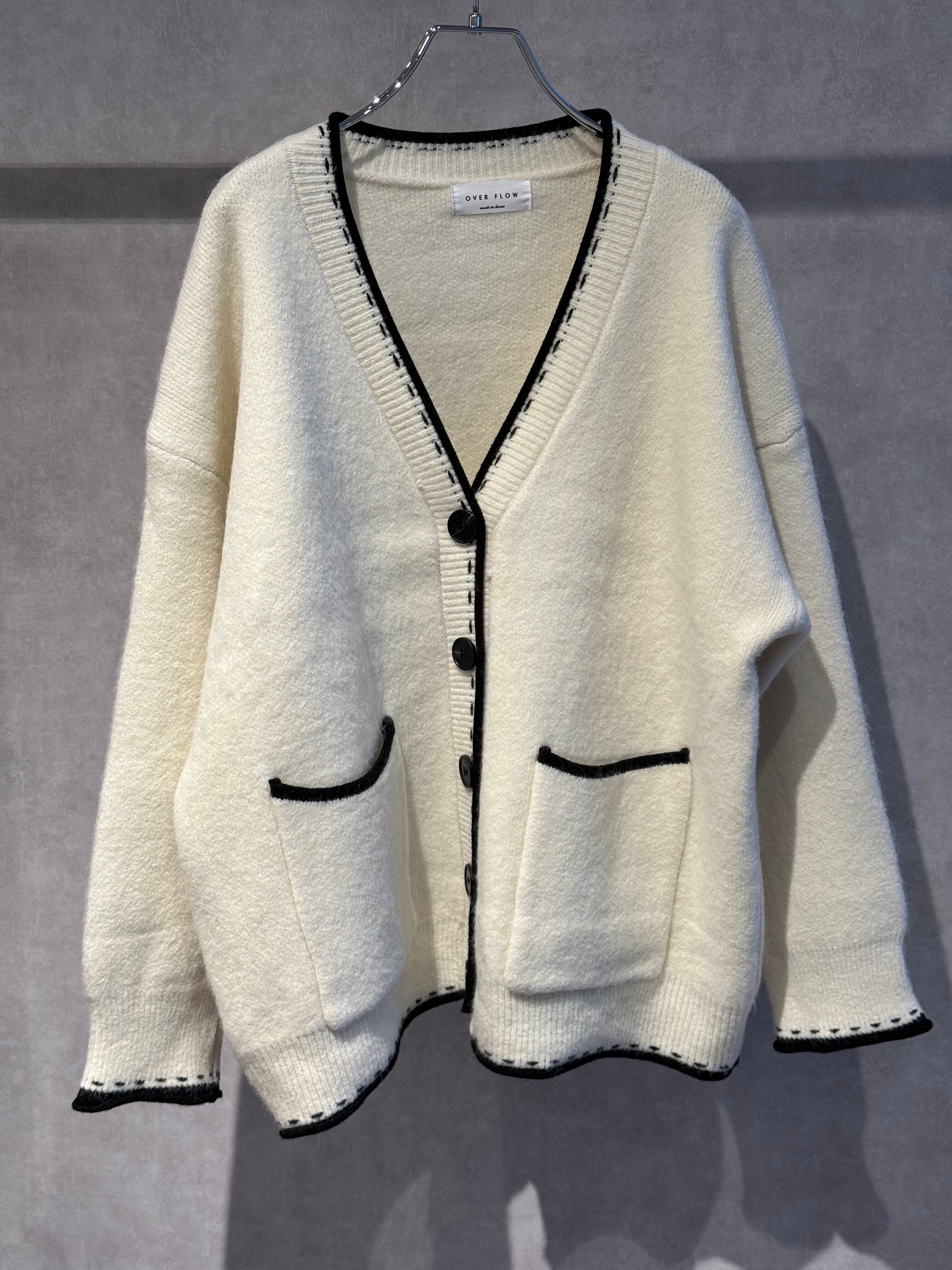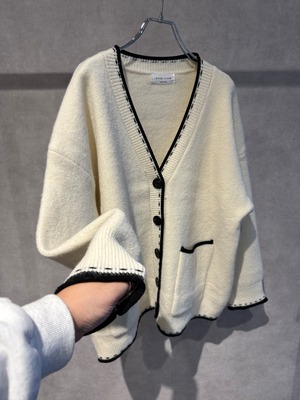 black piping stitch knit cardigan