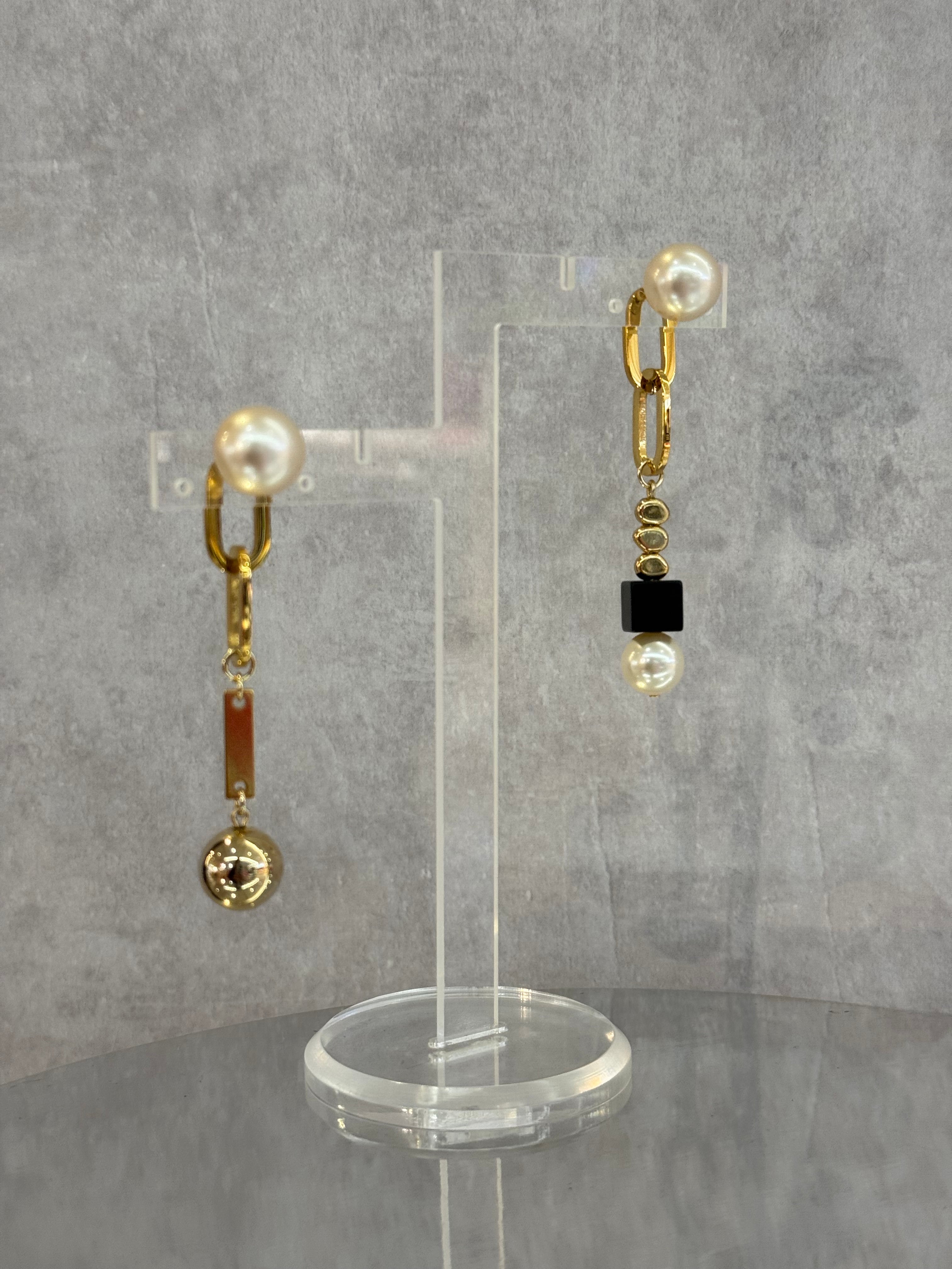 gold chain onyx pearl drop asymmetry