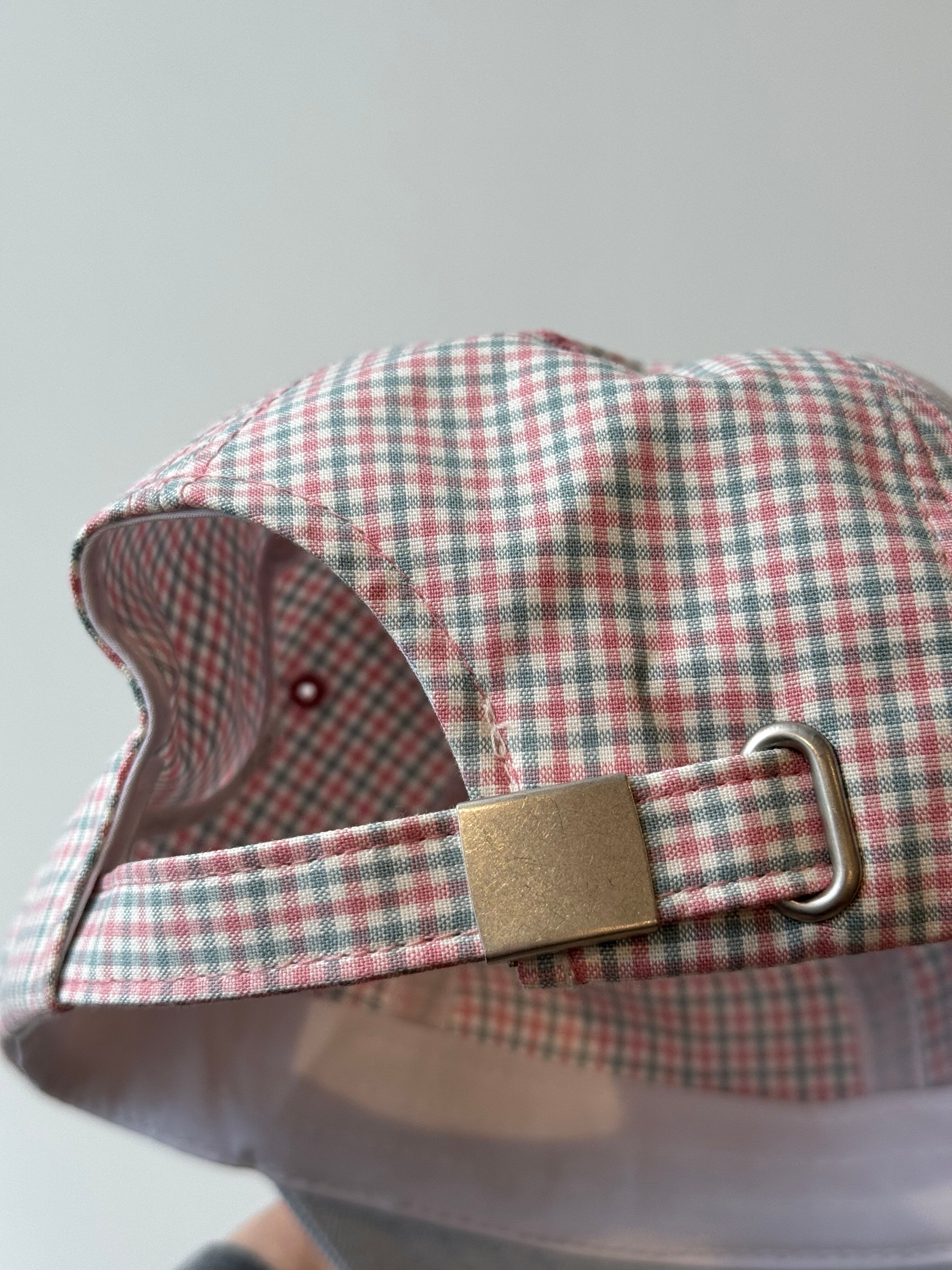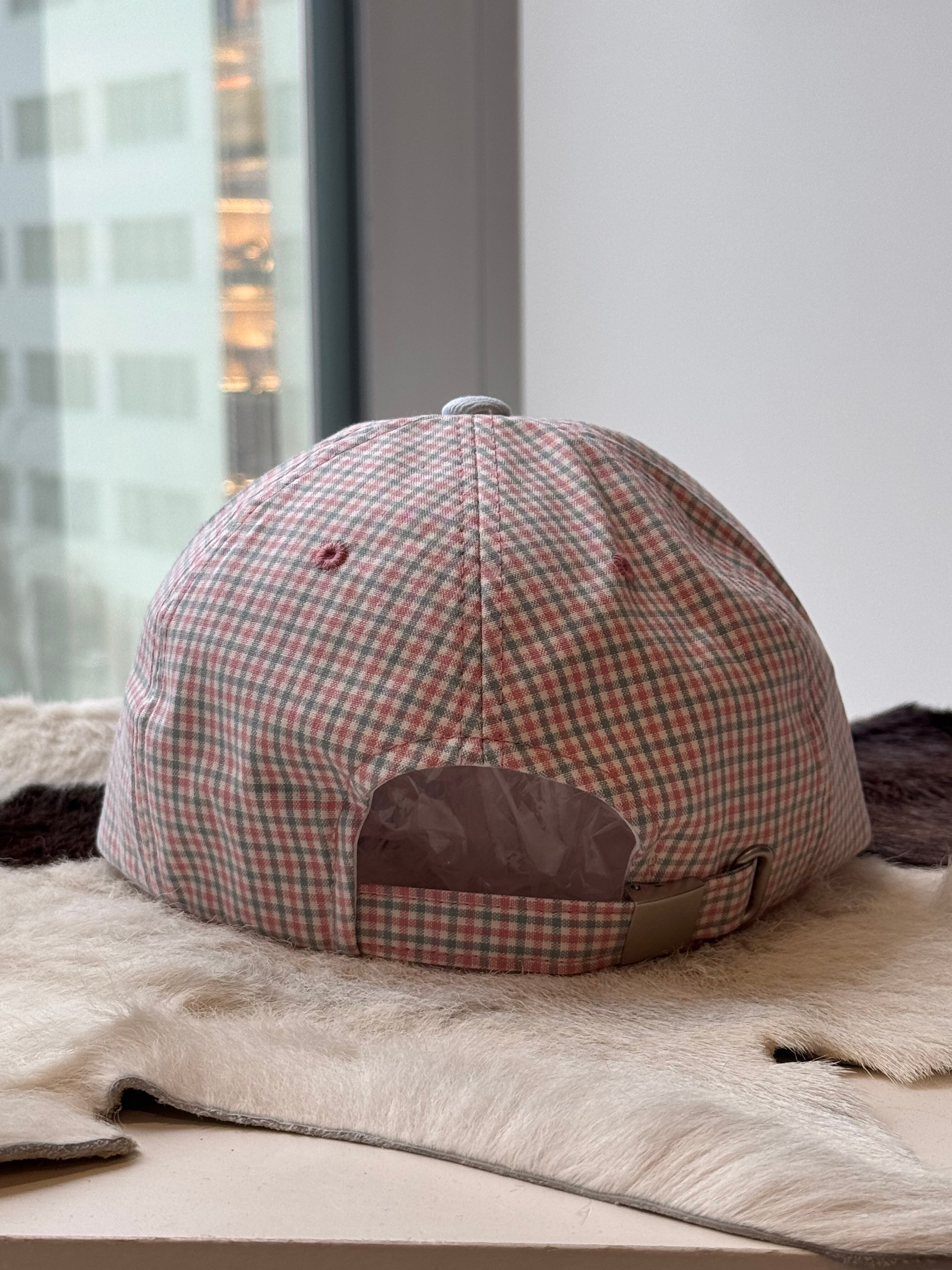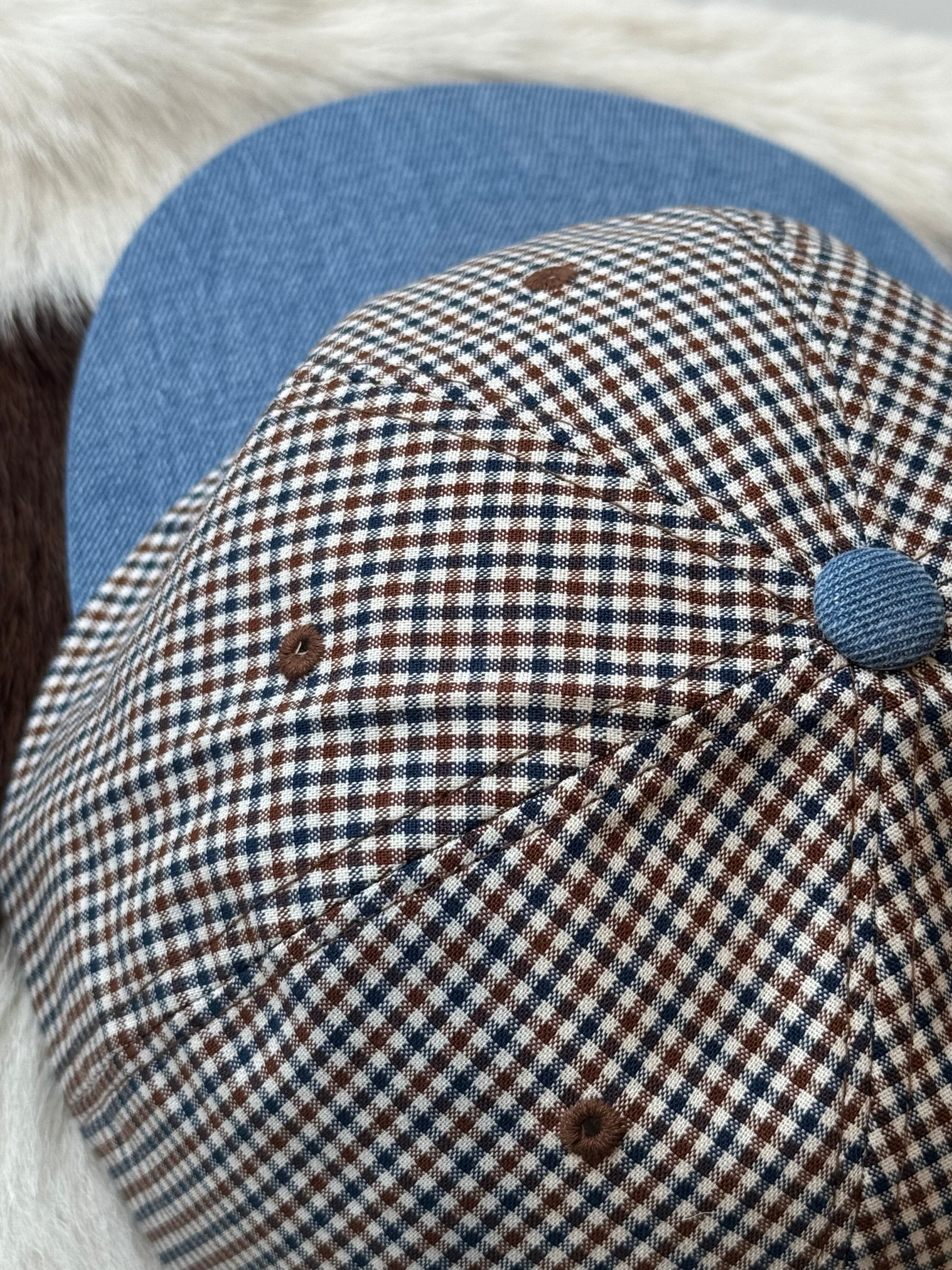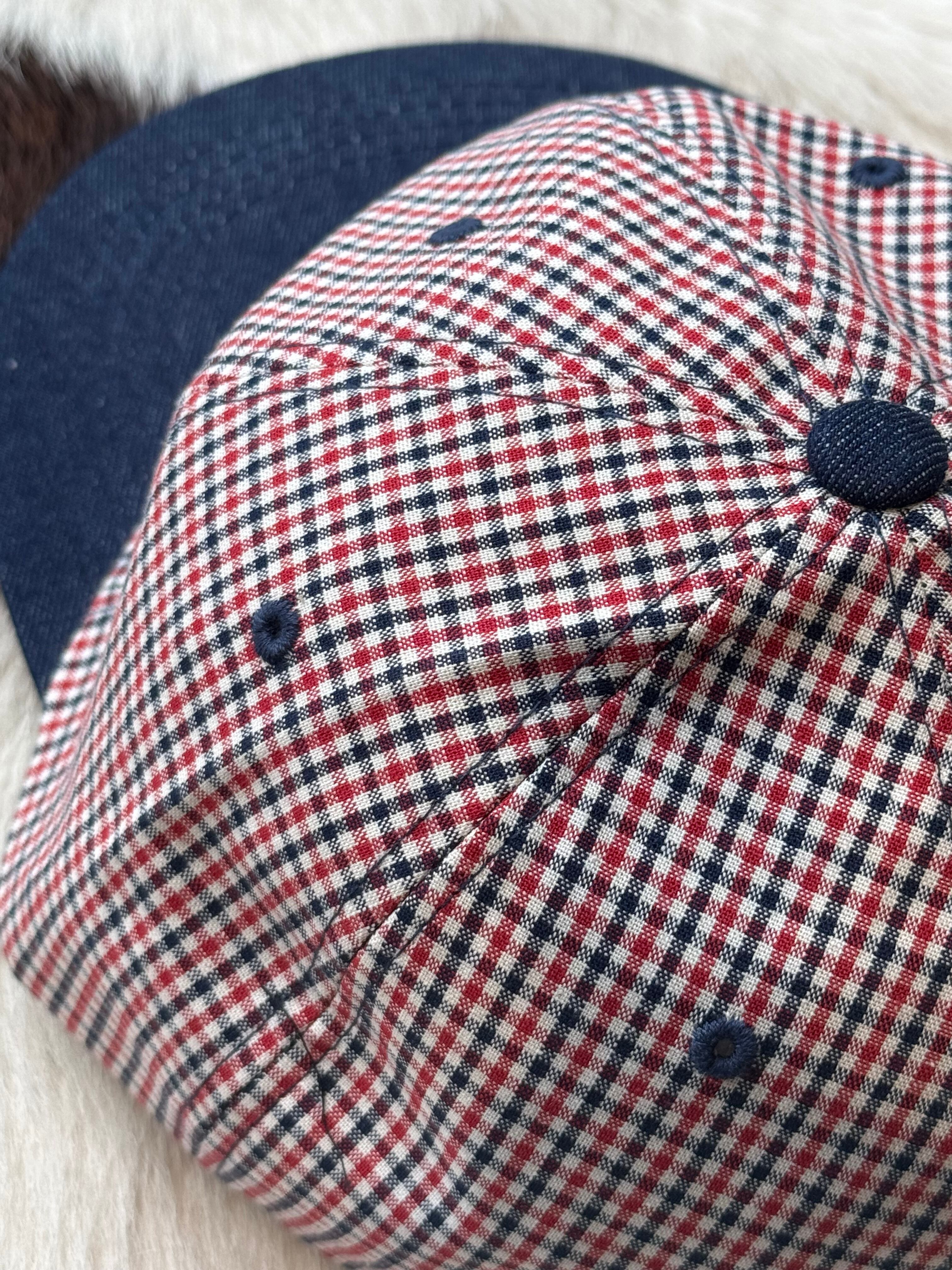 color block check cap