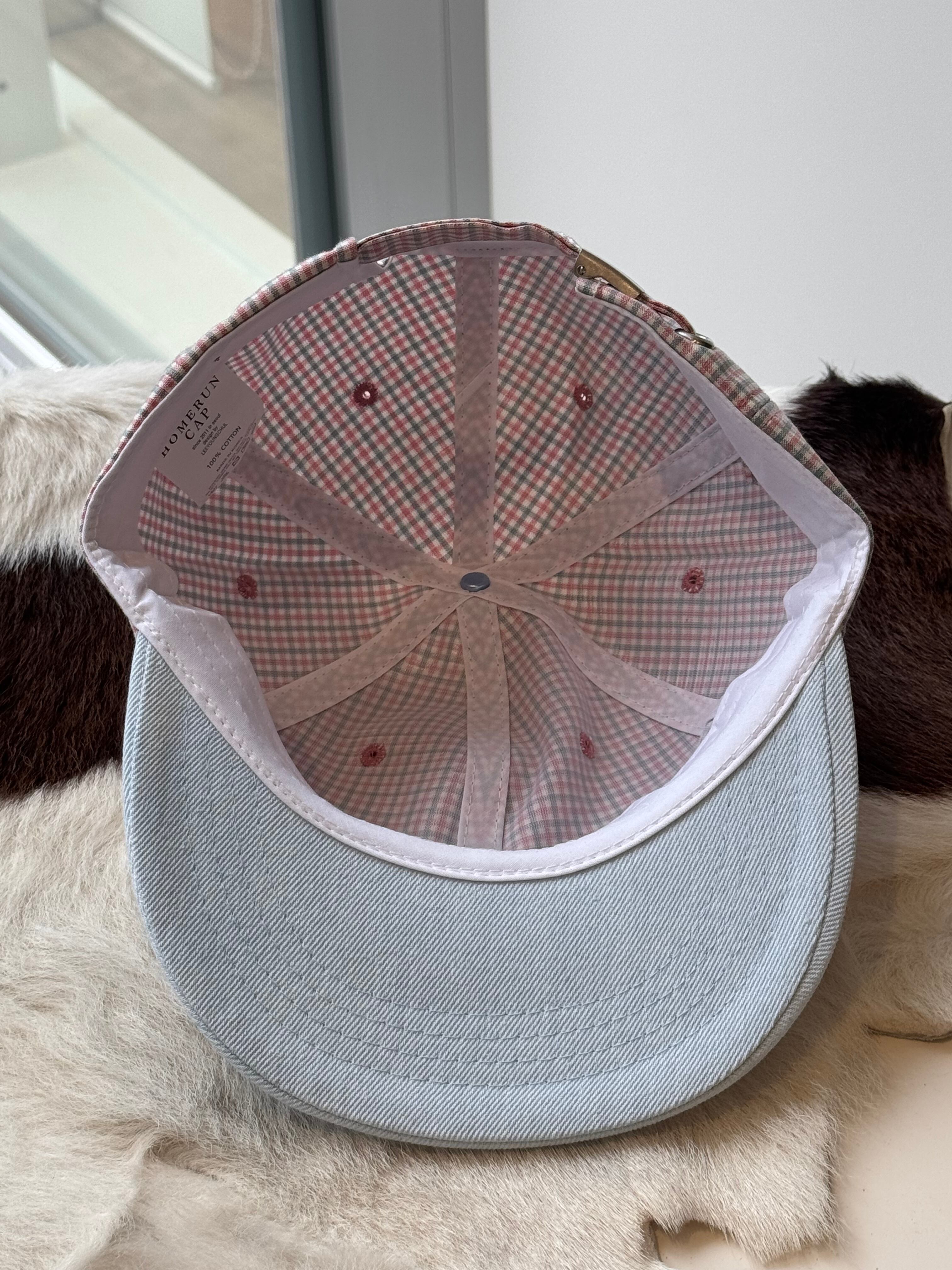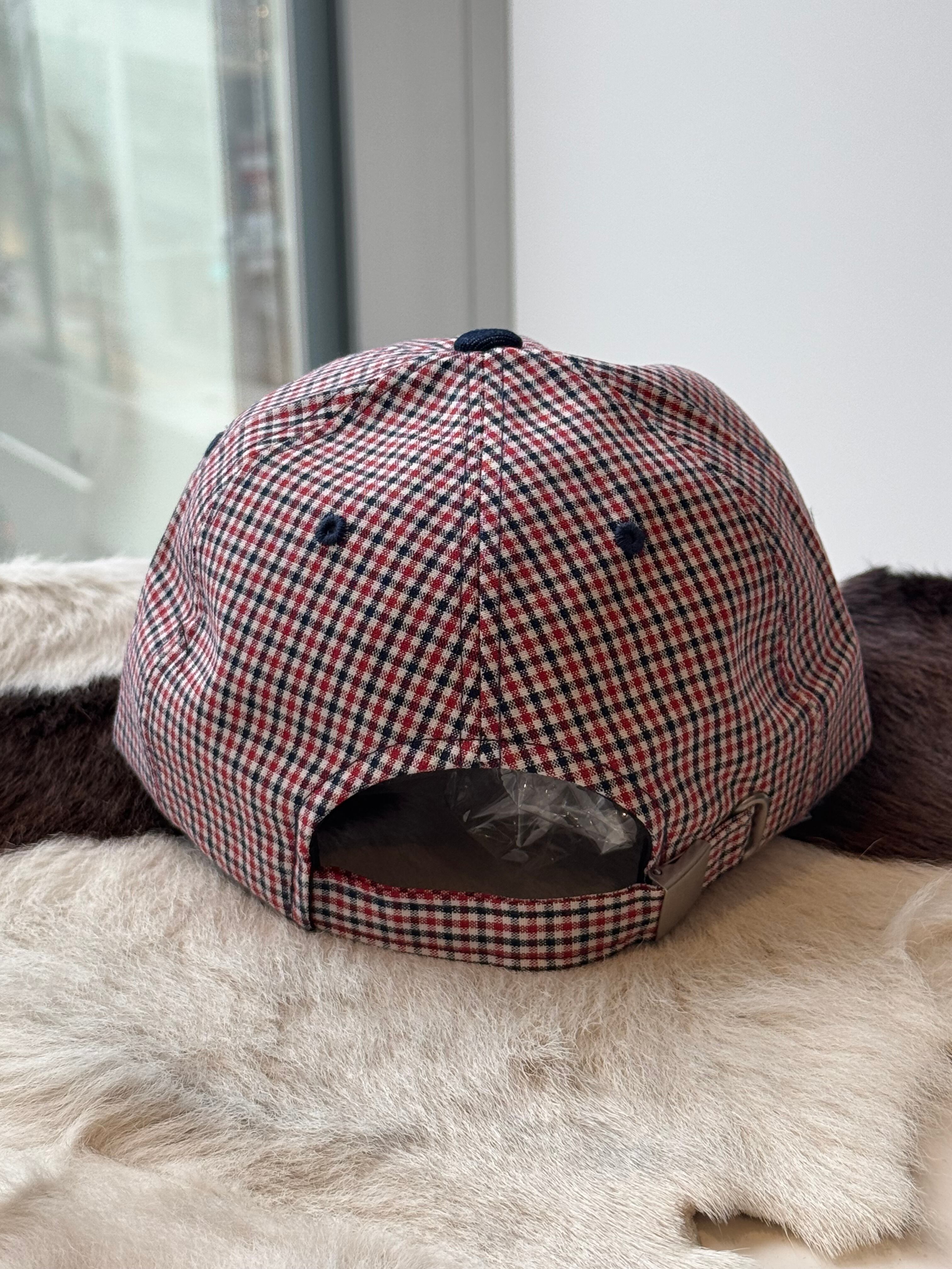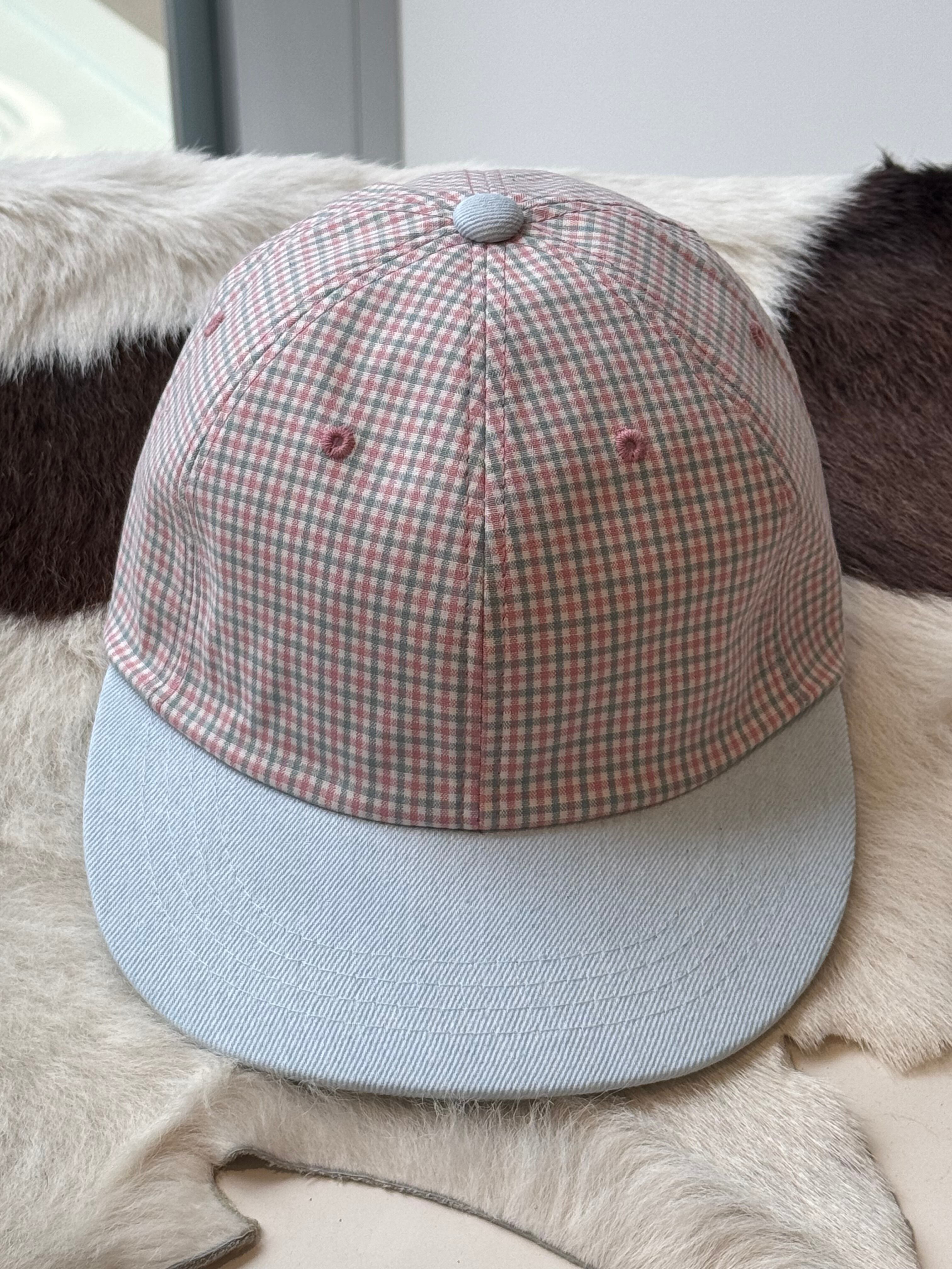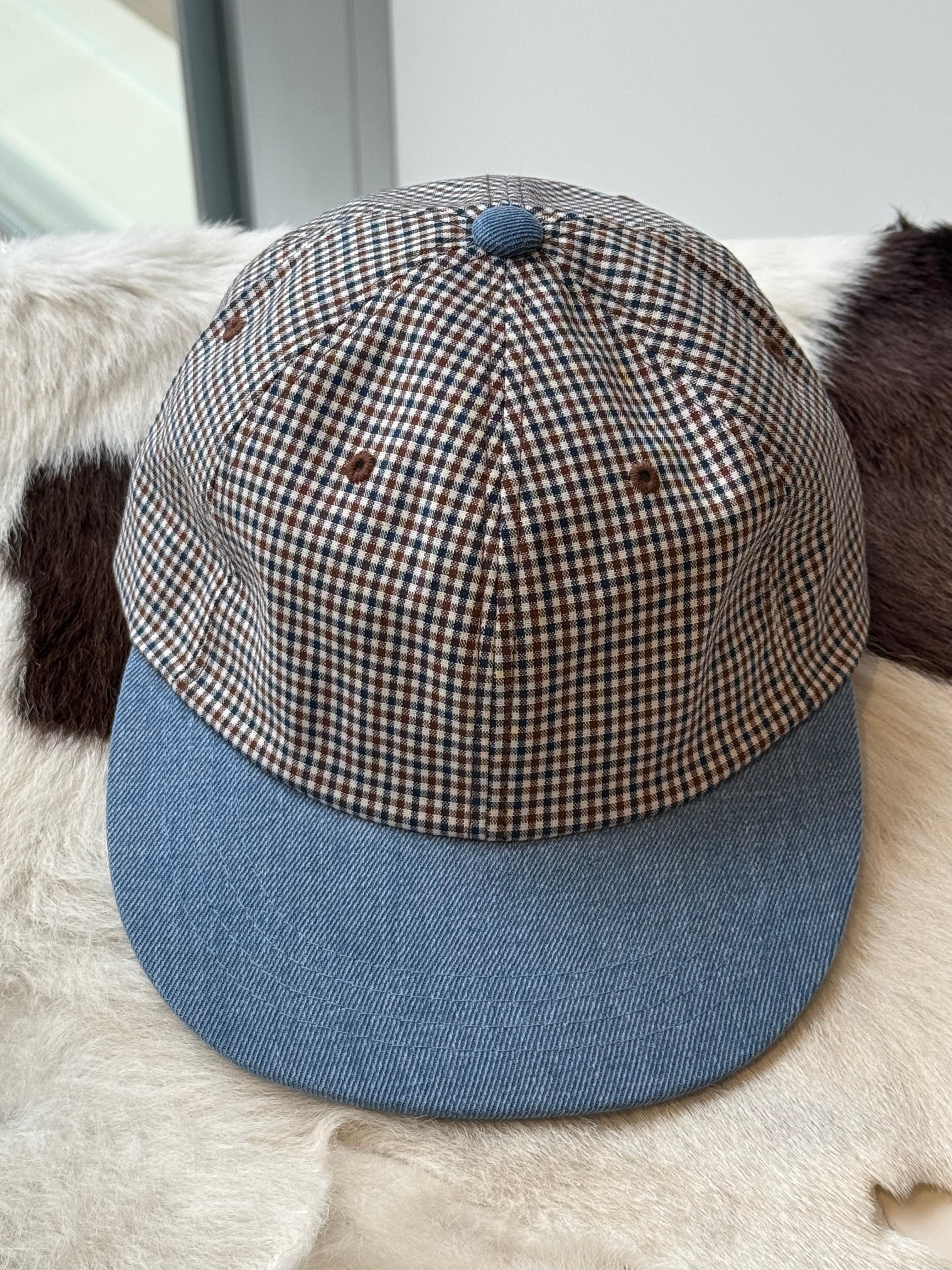 color block check cap