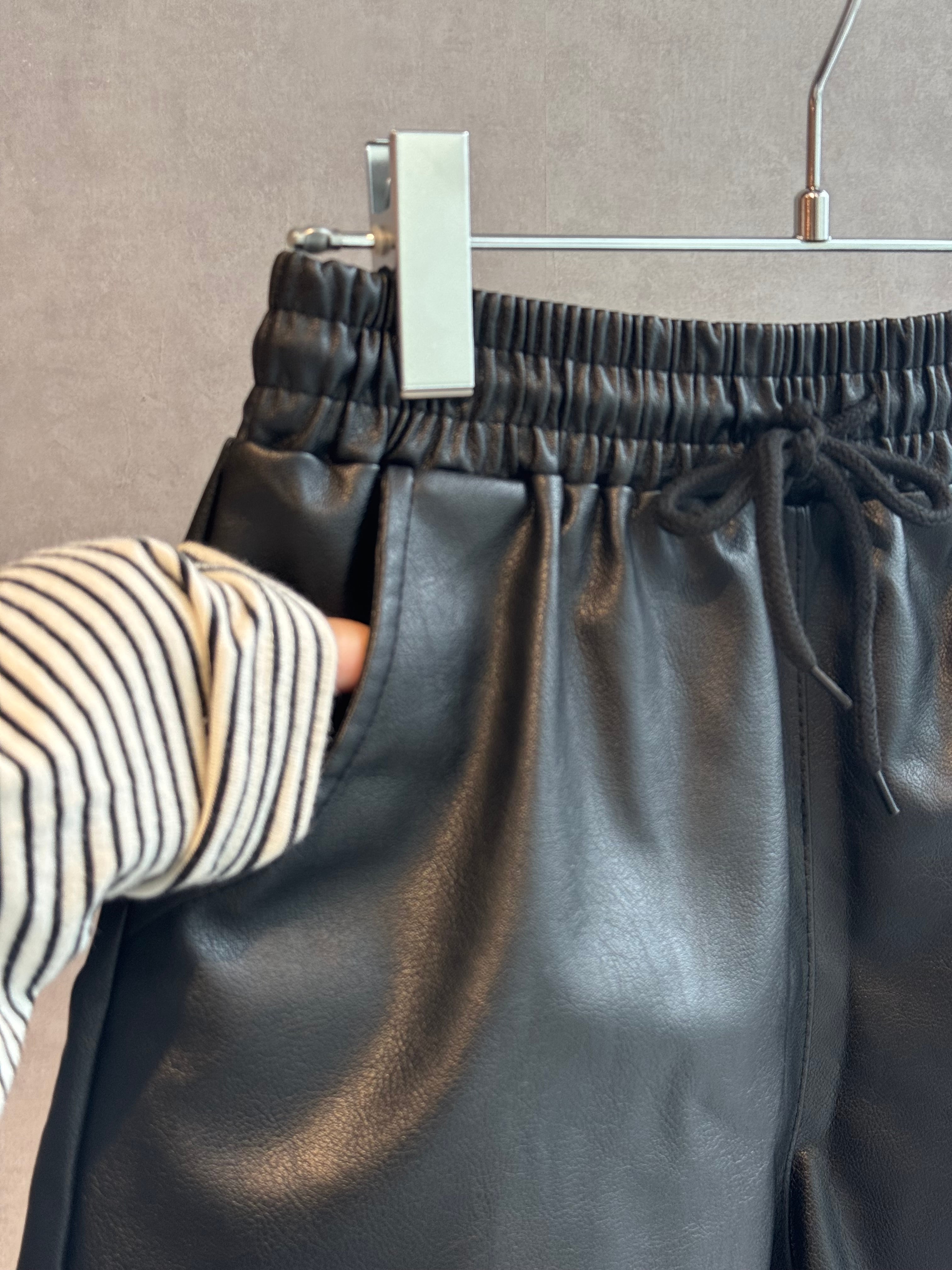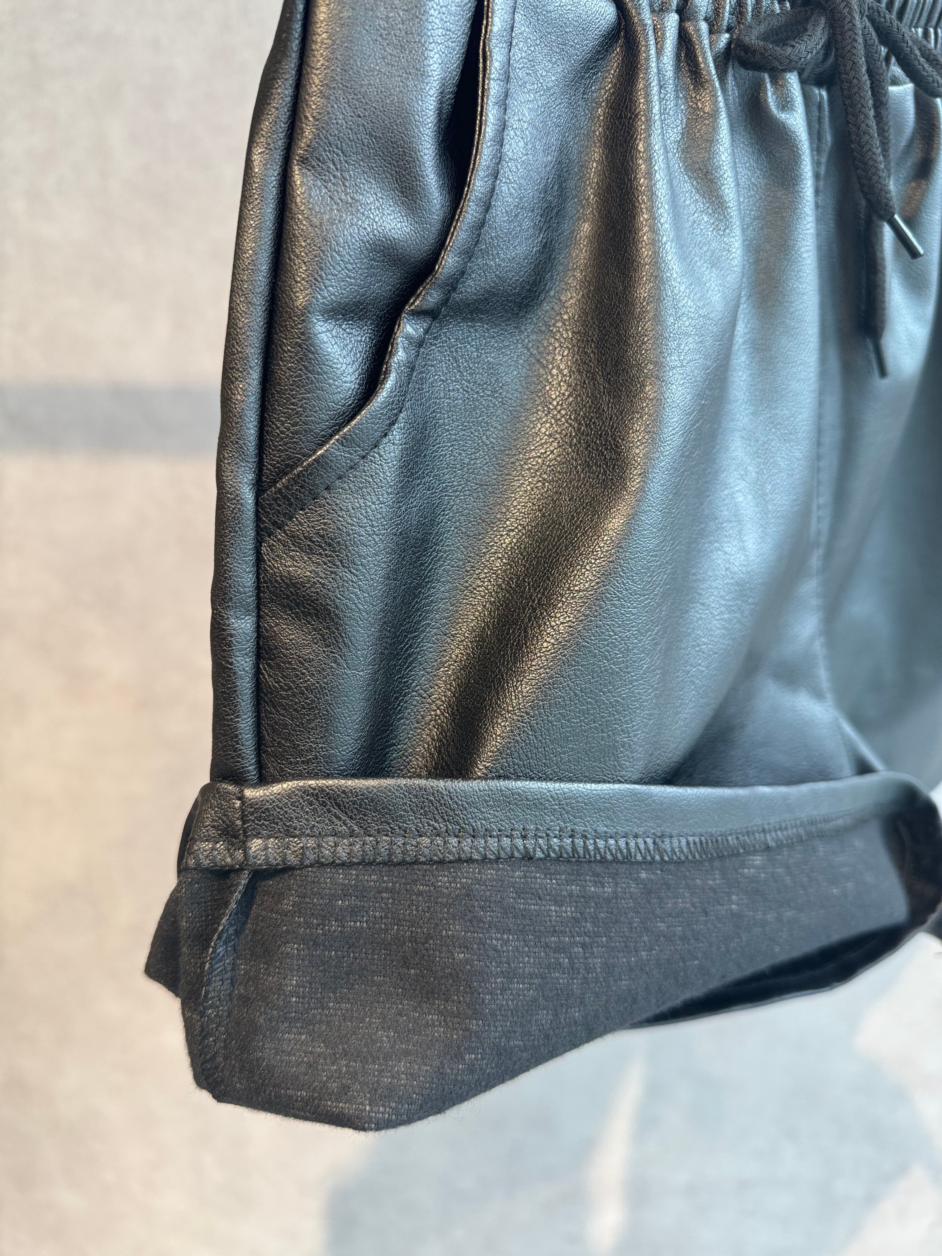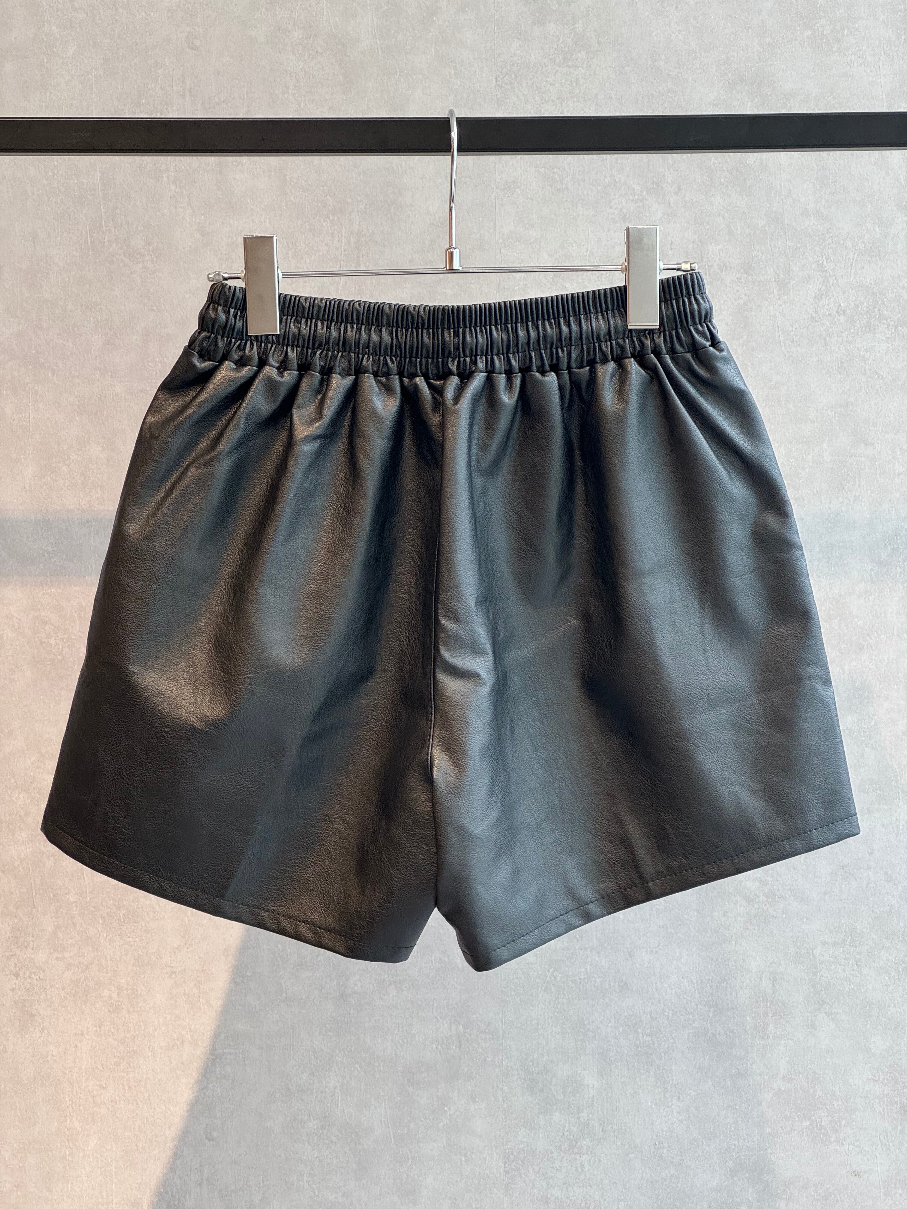 leather like gather short pants