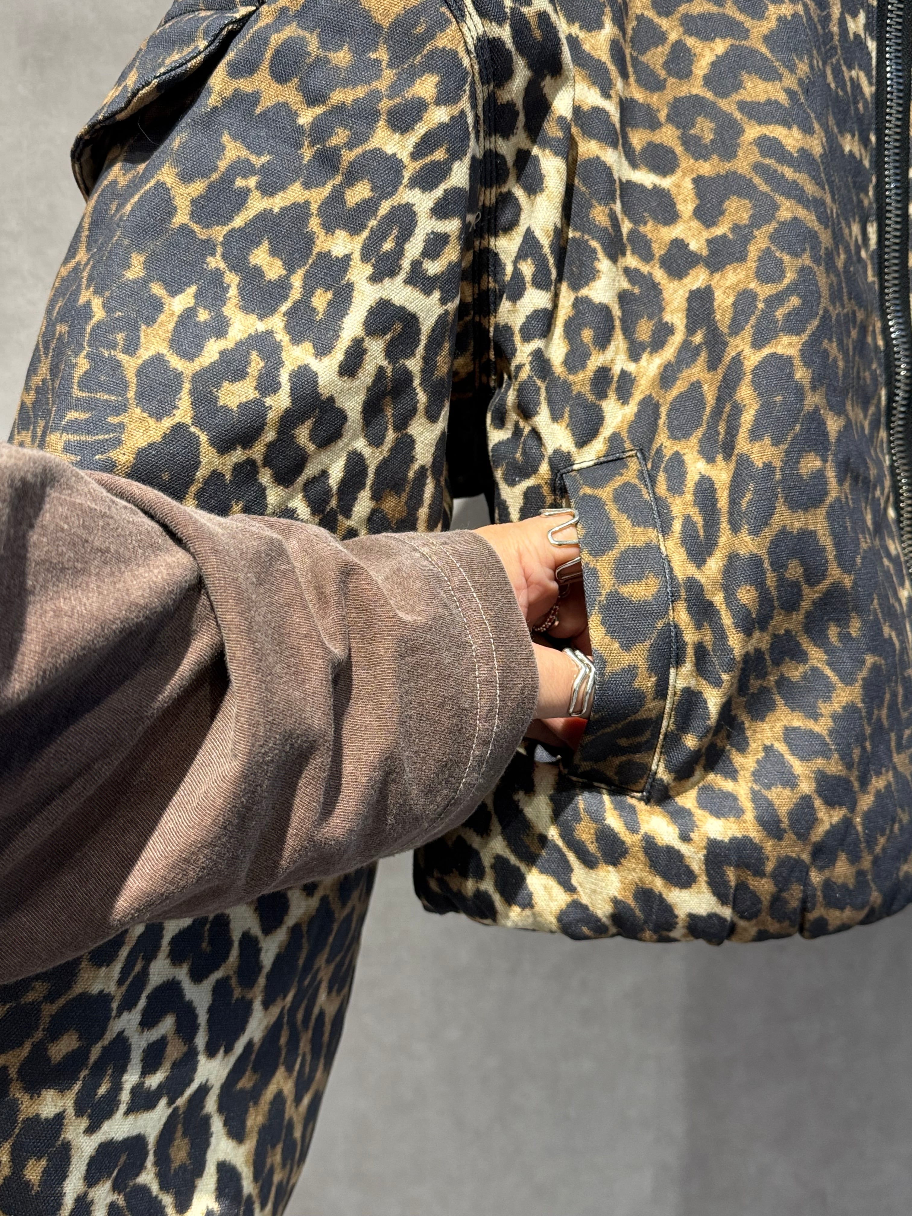 leopard cotton balloon blouson