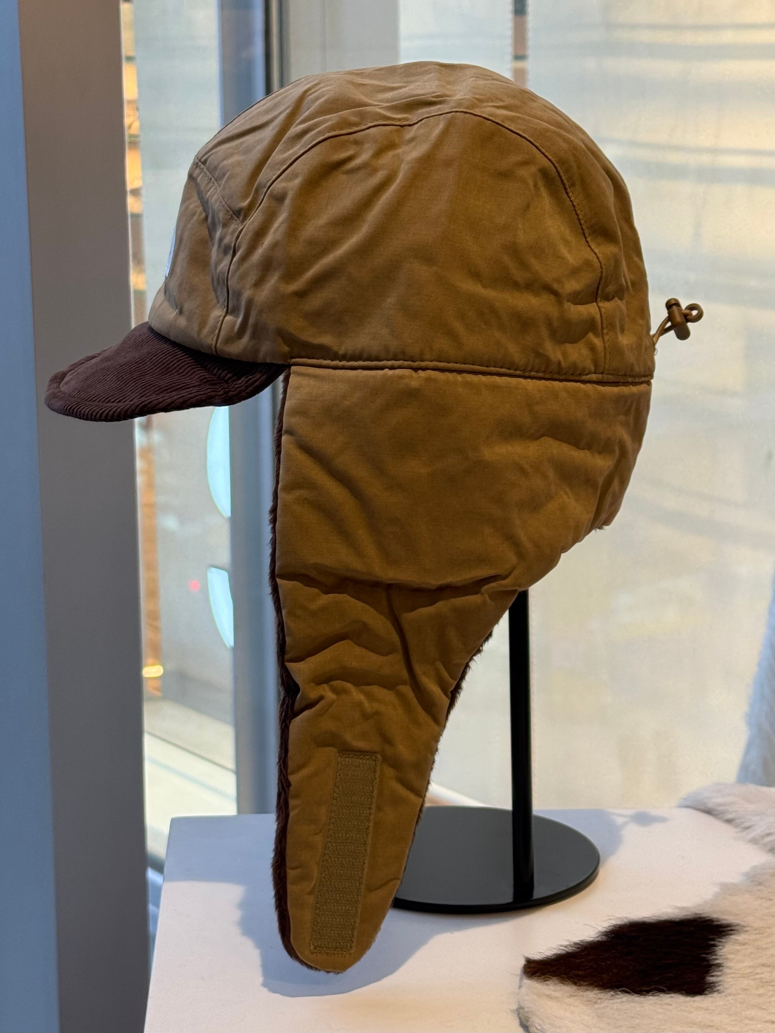 ワックスタッチ感のボディ素材とコーデュロイ質感の素材をつば部分に使用したイヤマフキャップです。