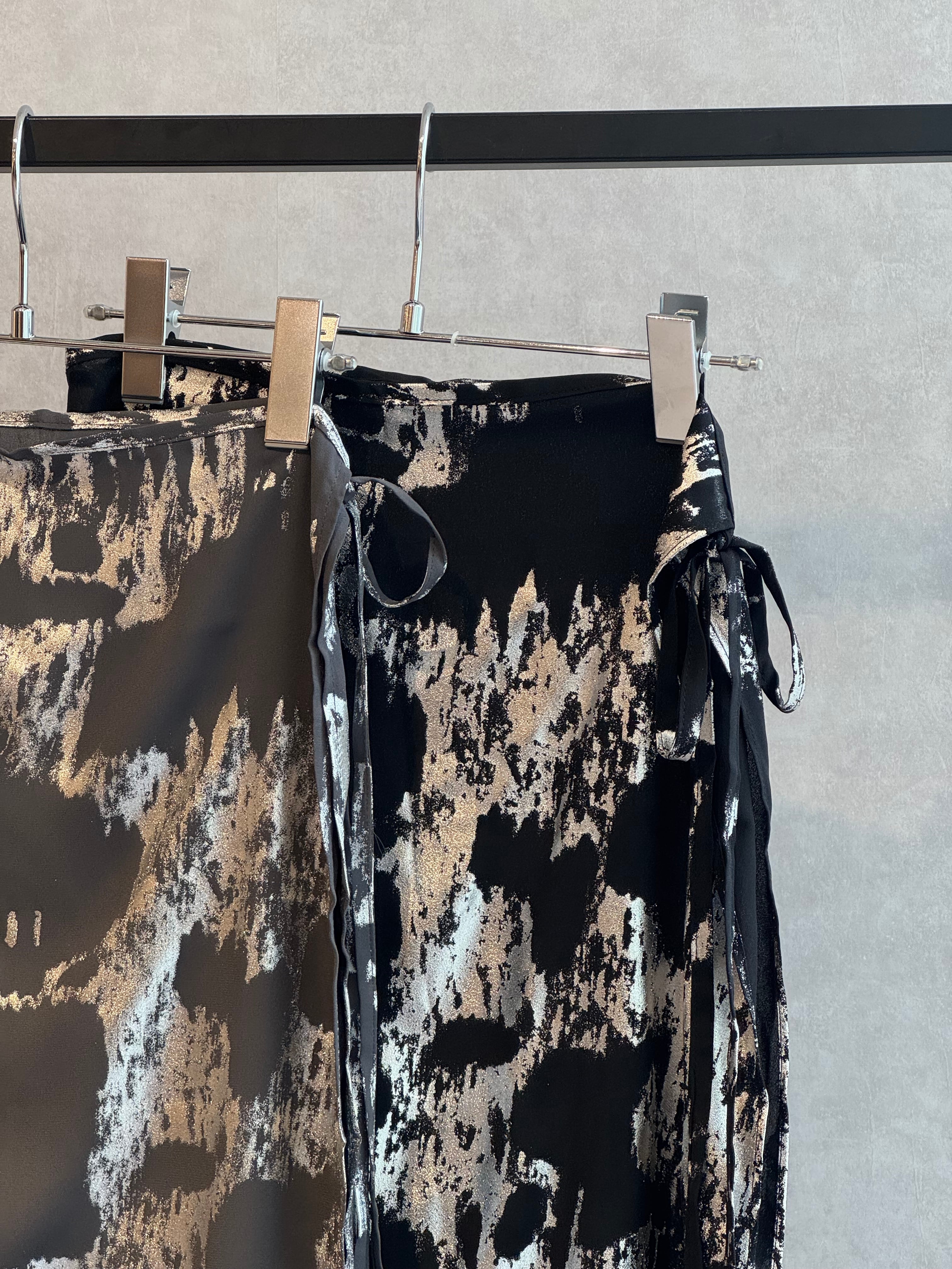foil print wrap skirt