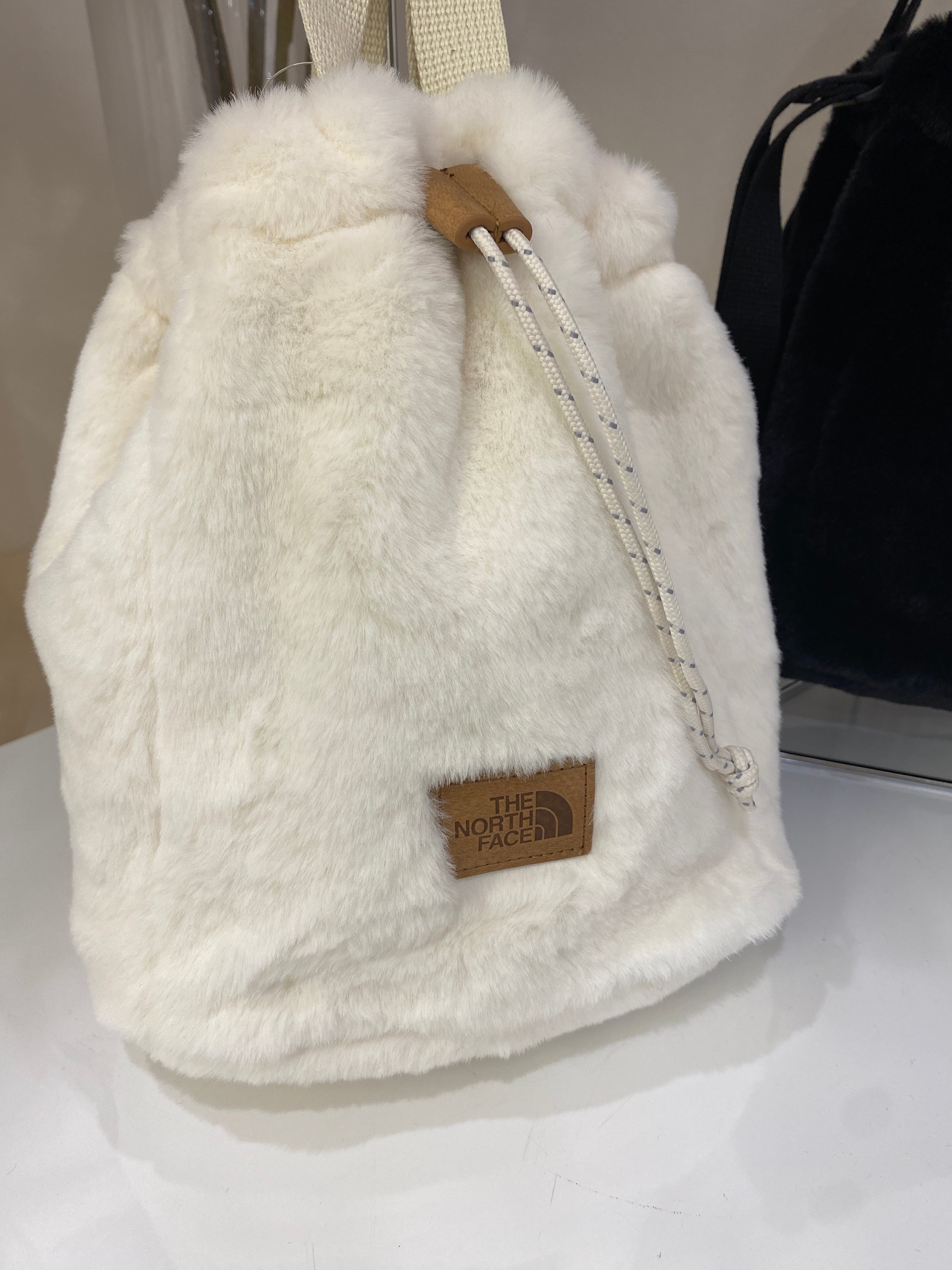 ノースフェイスの「white label」ファーバッグは、モダンなデザインと暖かみのあるファーが特徴的なバケットバッグです。