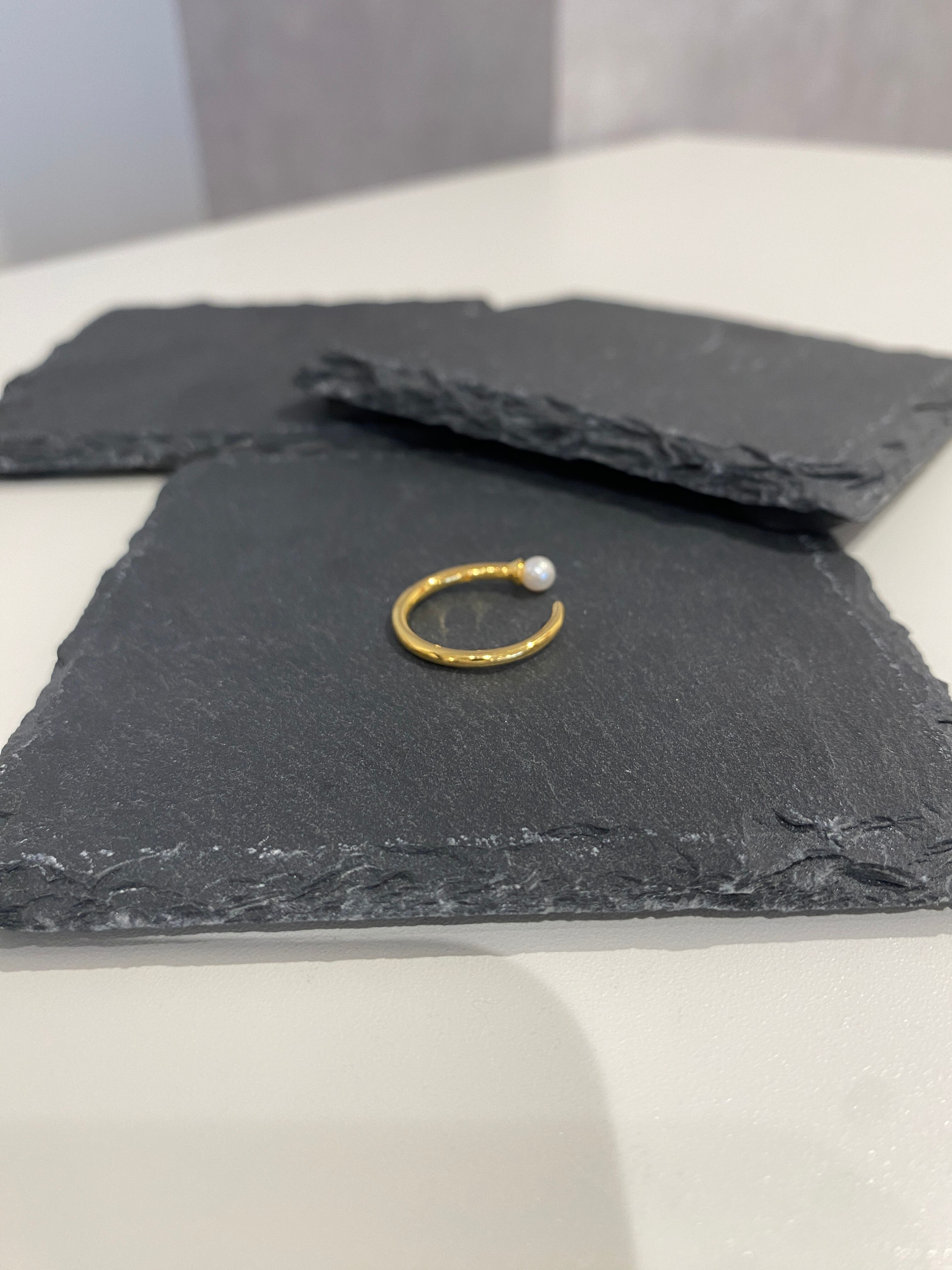 3㎜程の小さなスワロフスキーパールが1粒付いたシンプルなリング。フォーマルなどにもオススメです