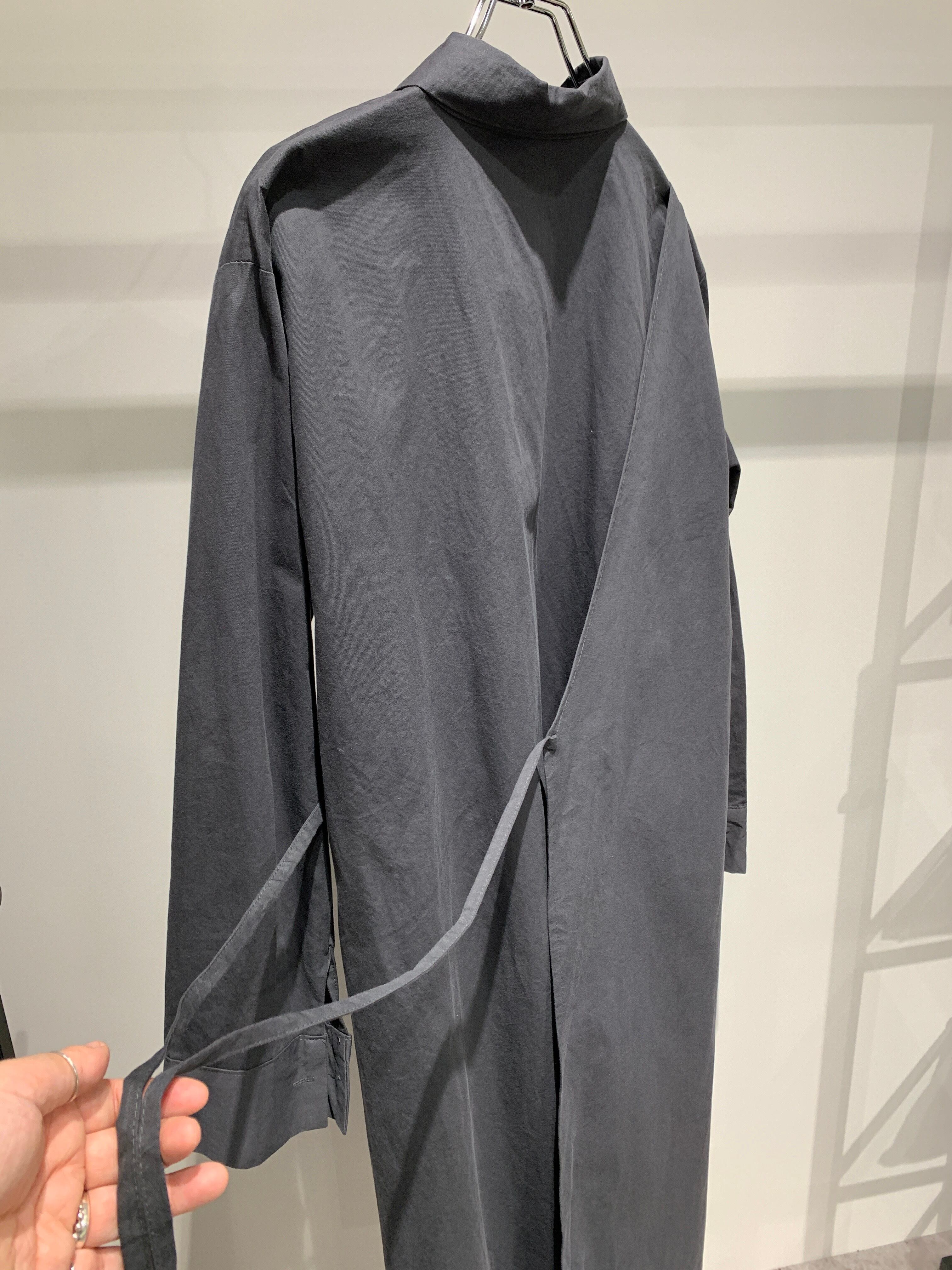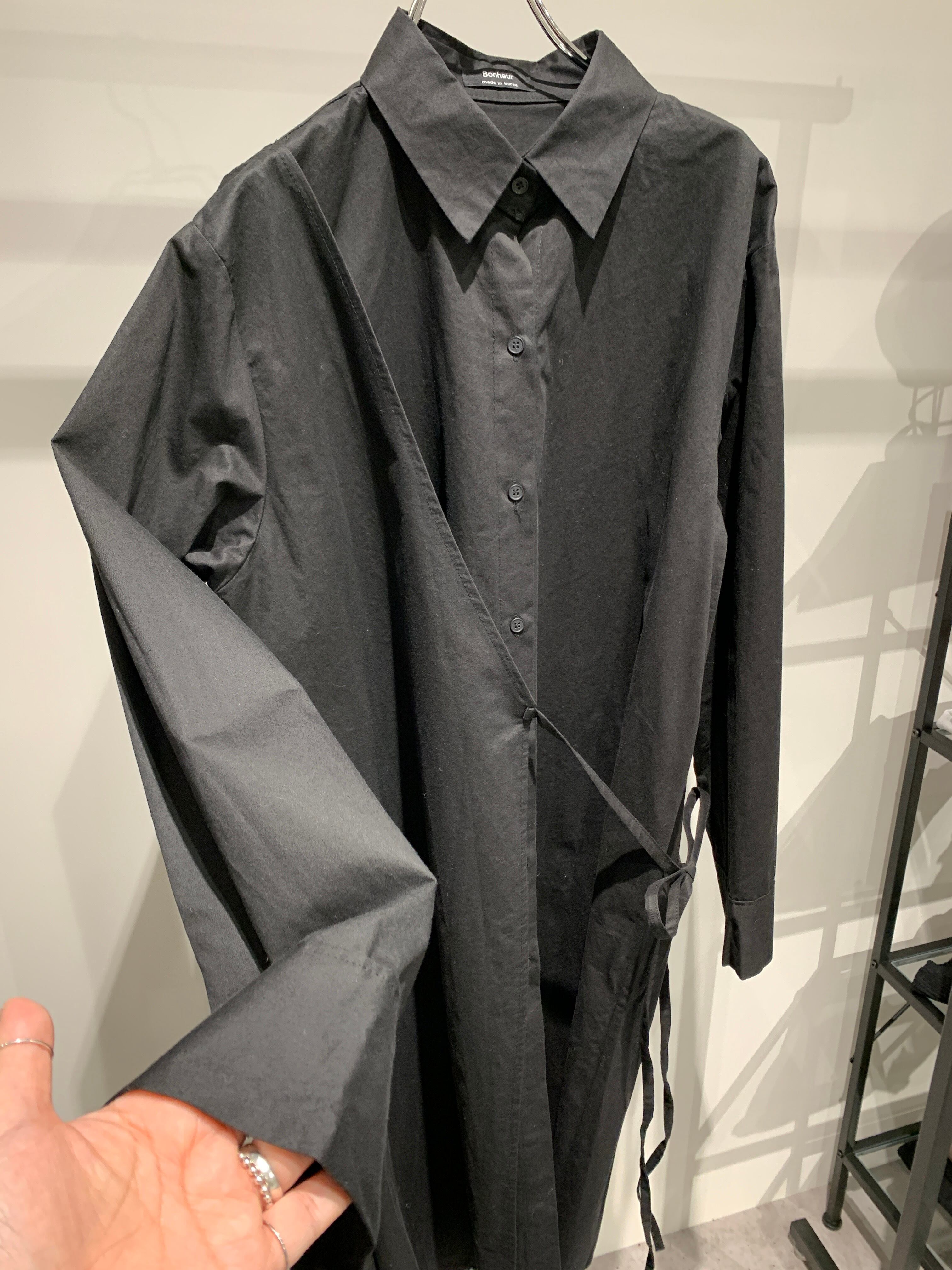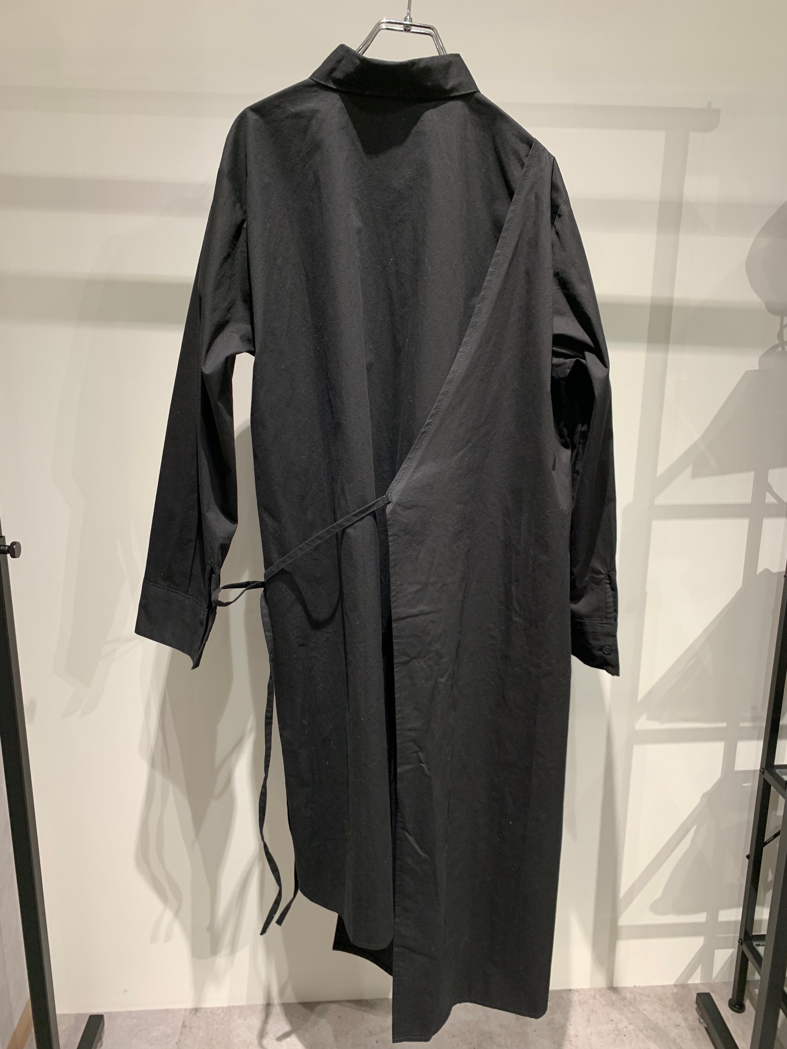 シャツカラーのアシンメトリーなラップワンピース。