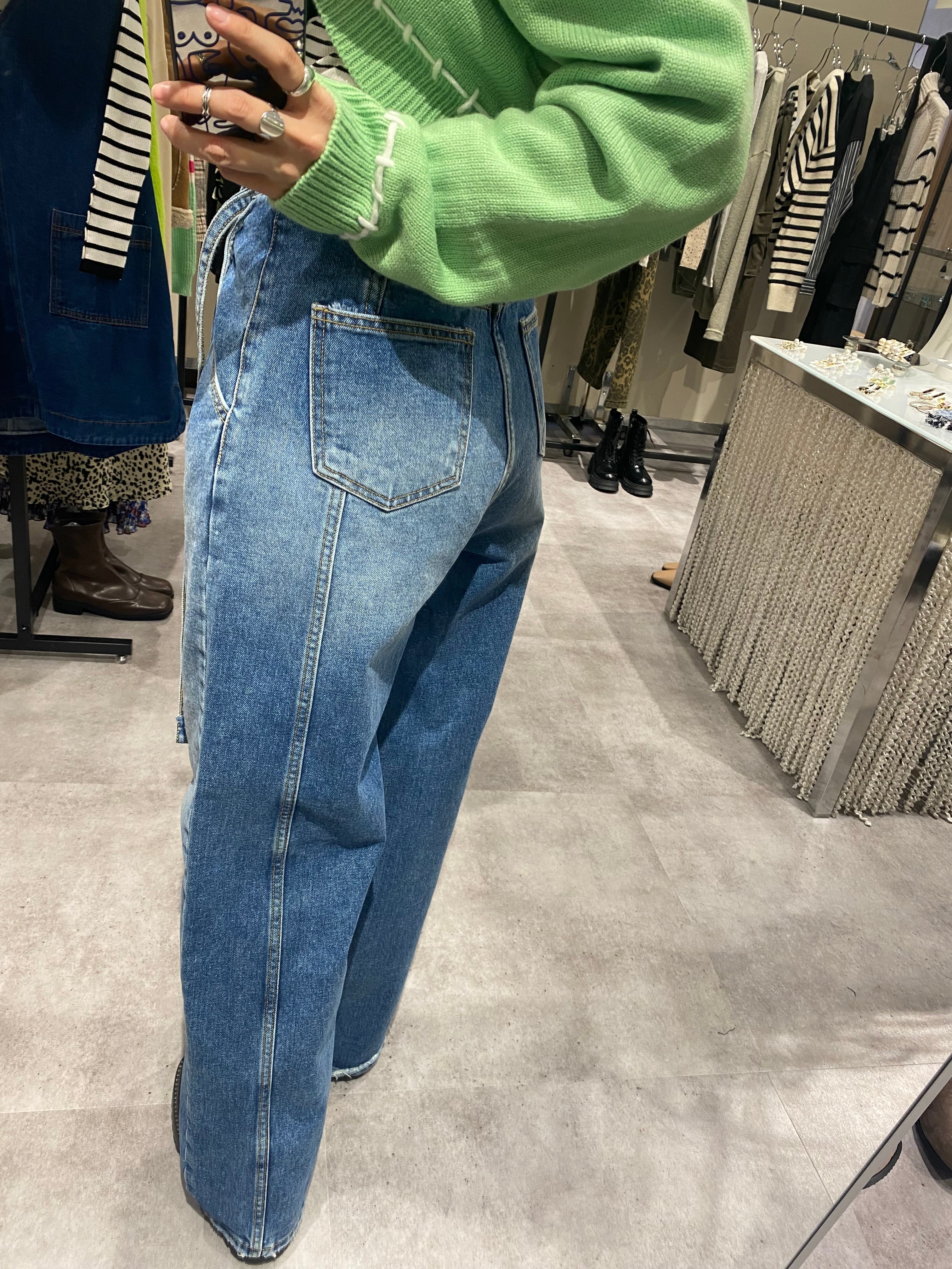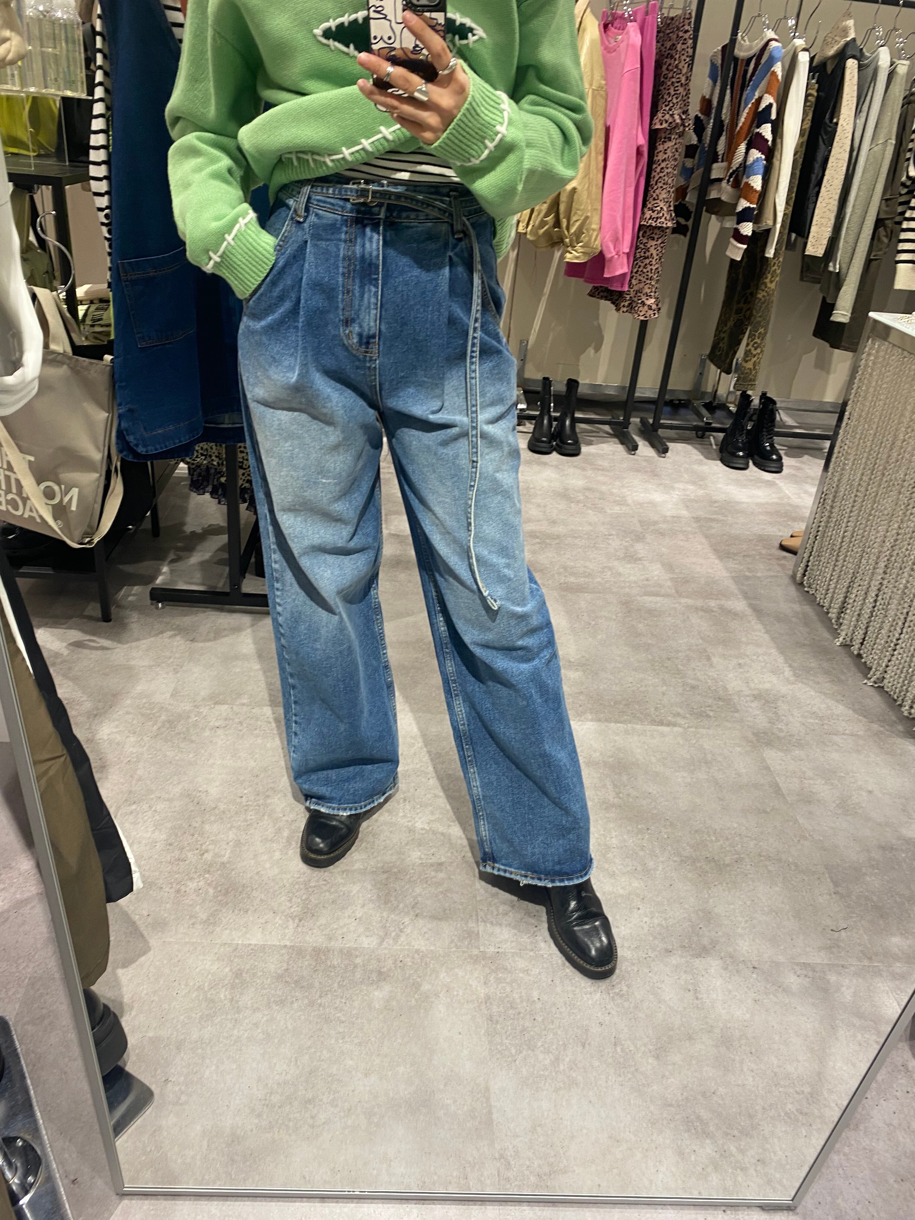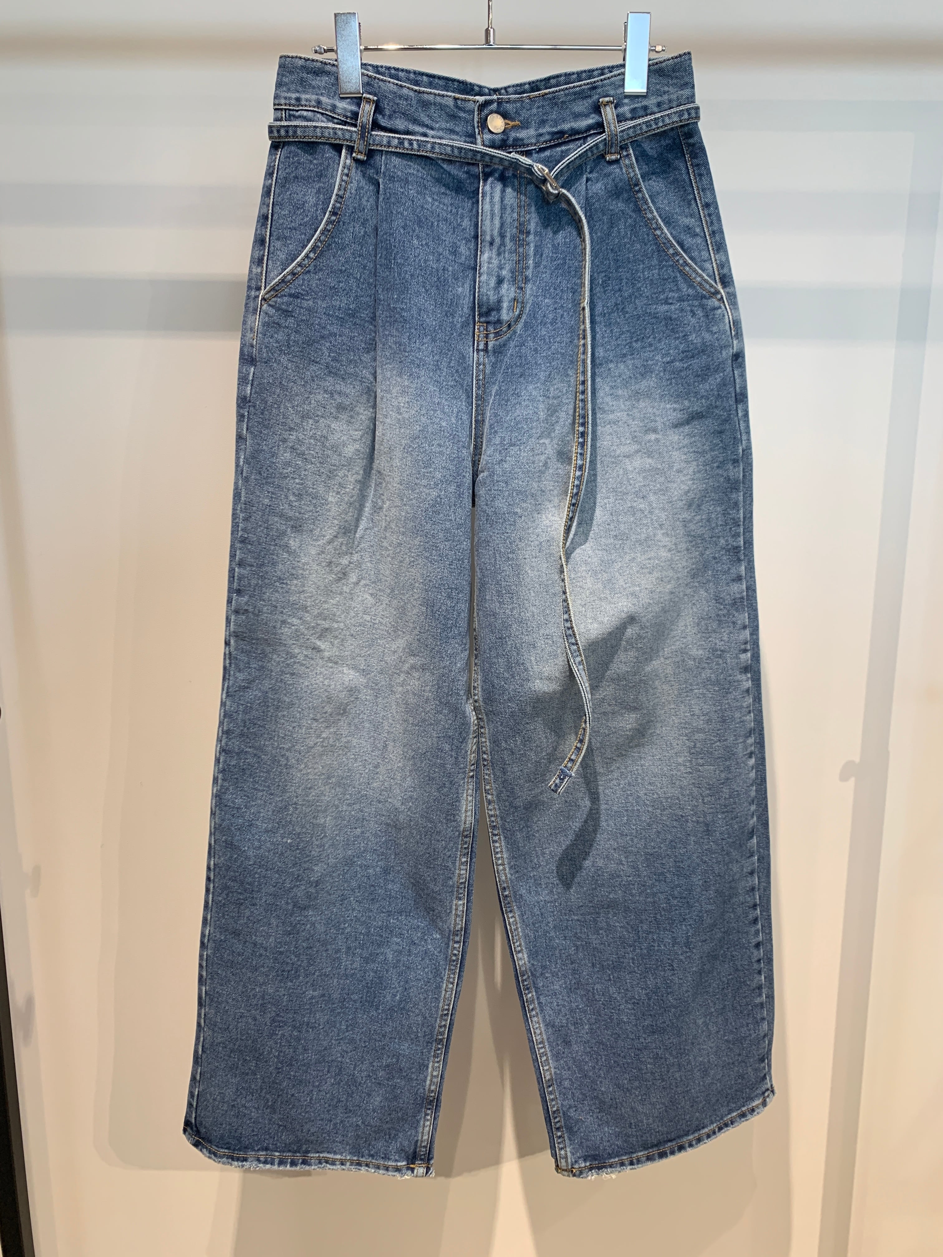 waist belt tuck wide denim