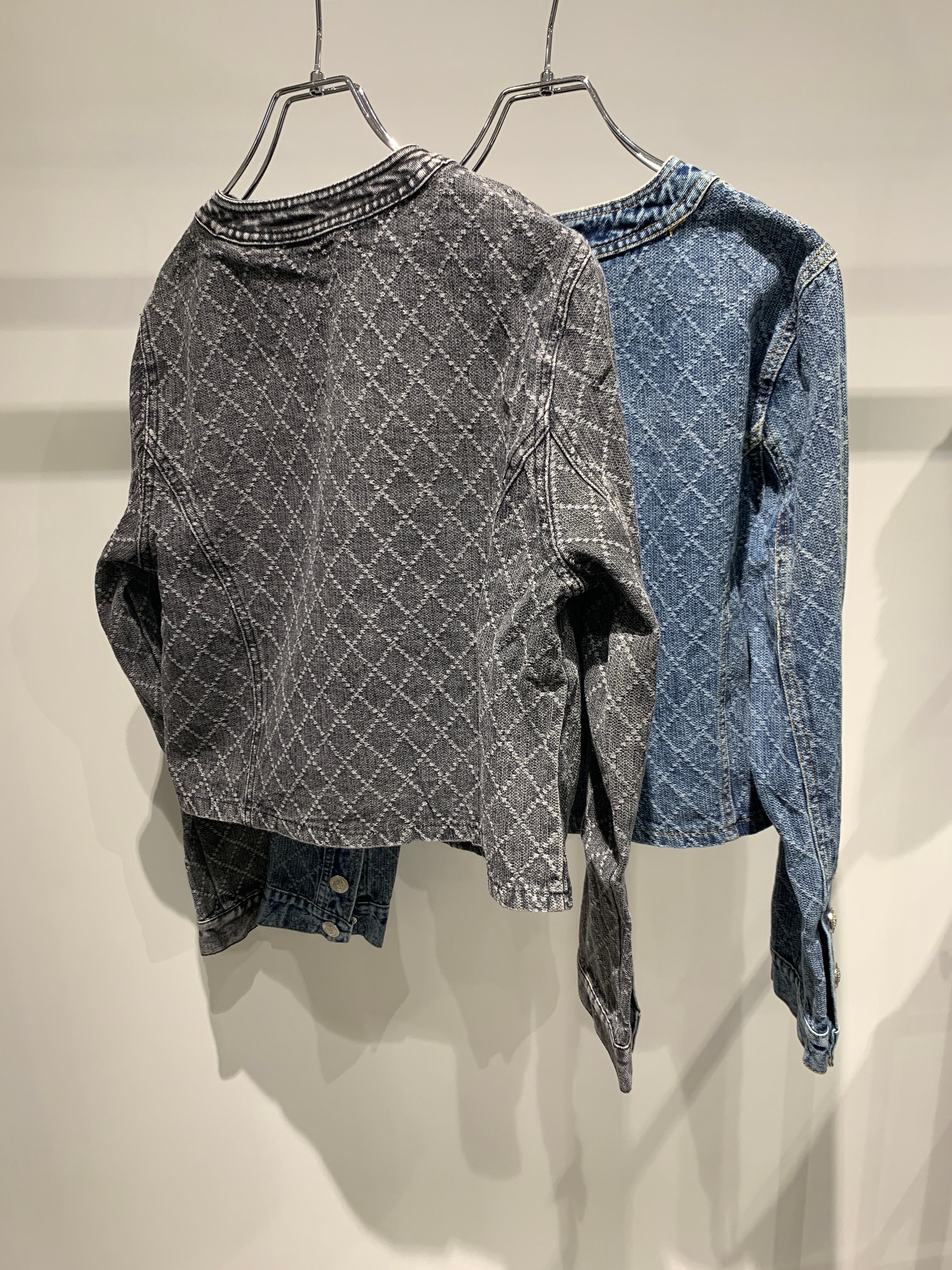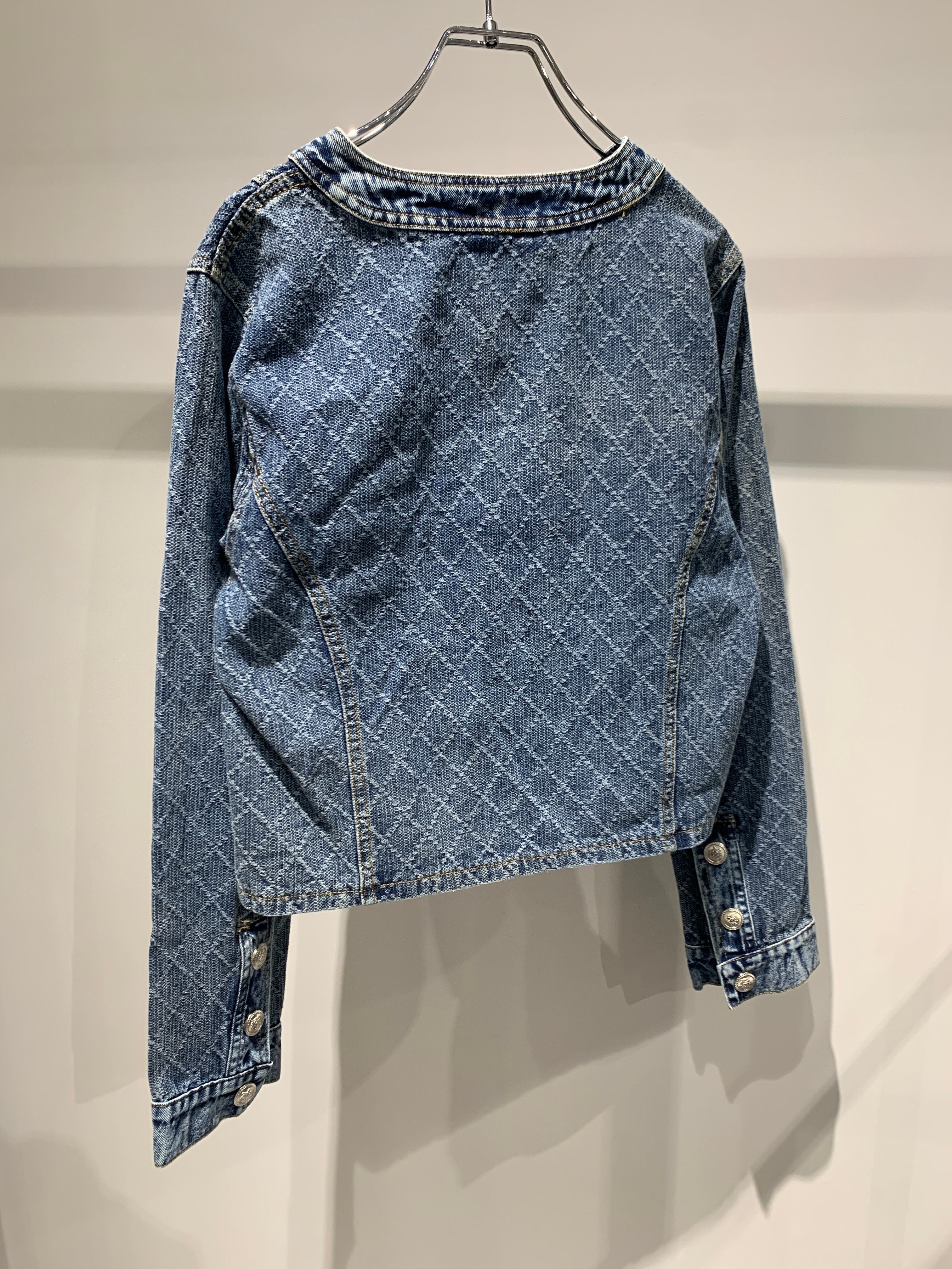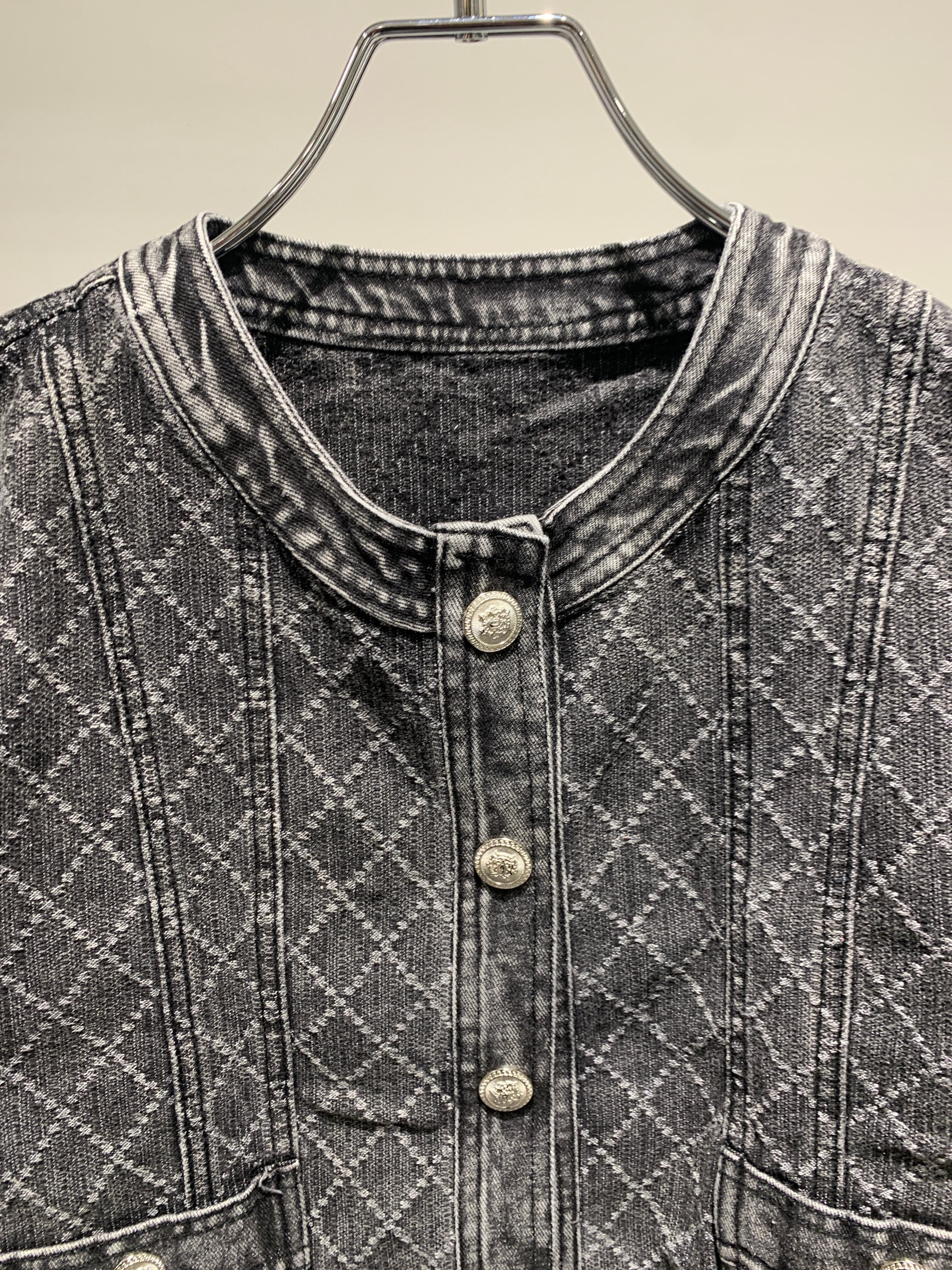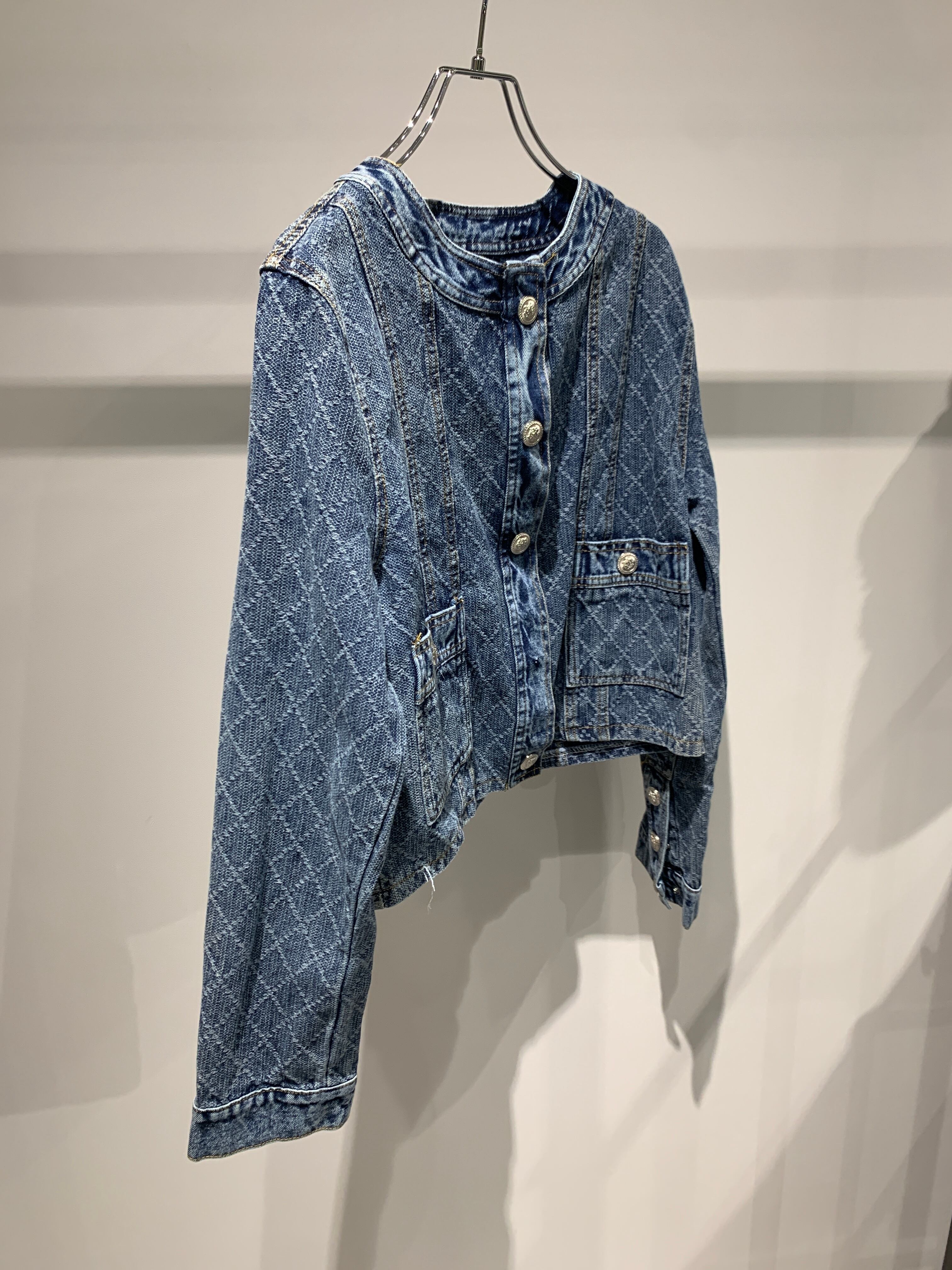 denim no collar compact jacket
