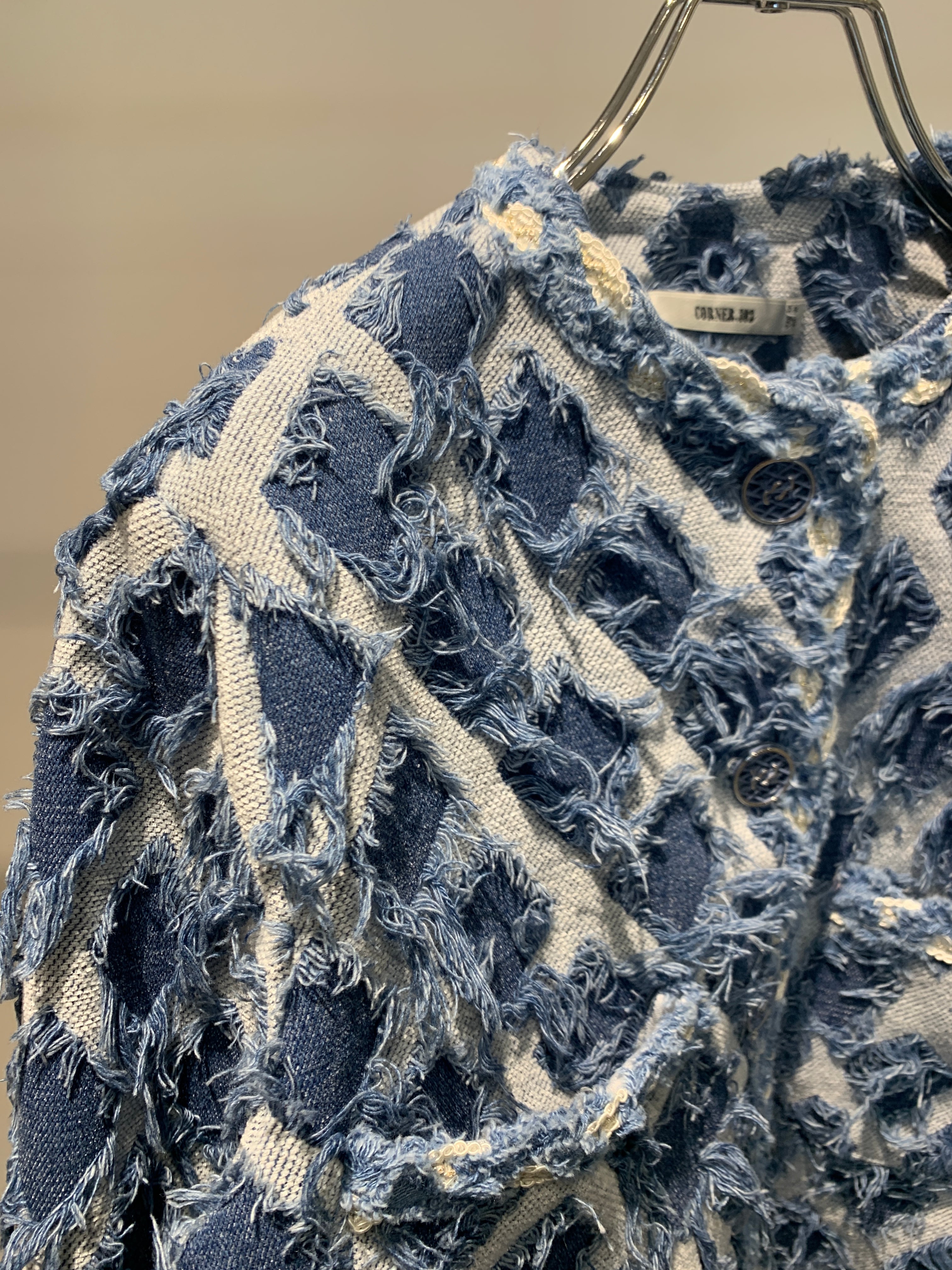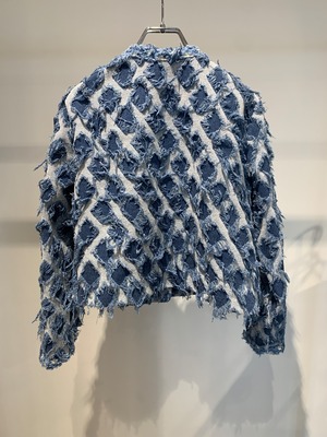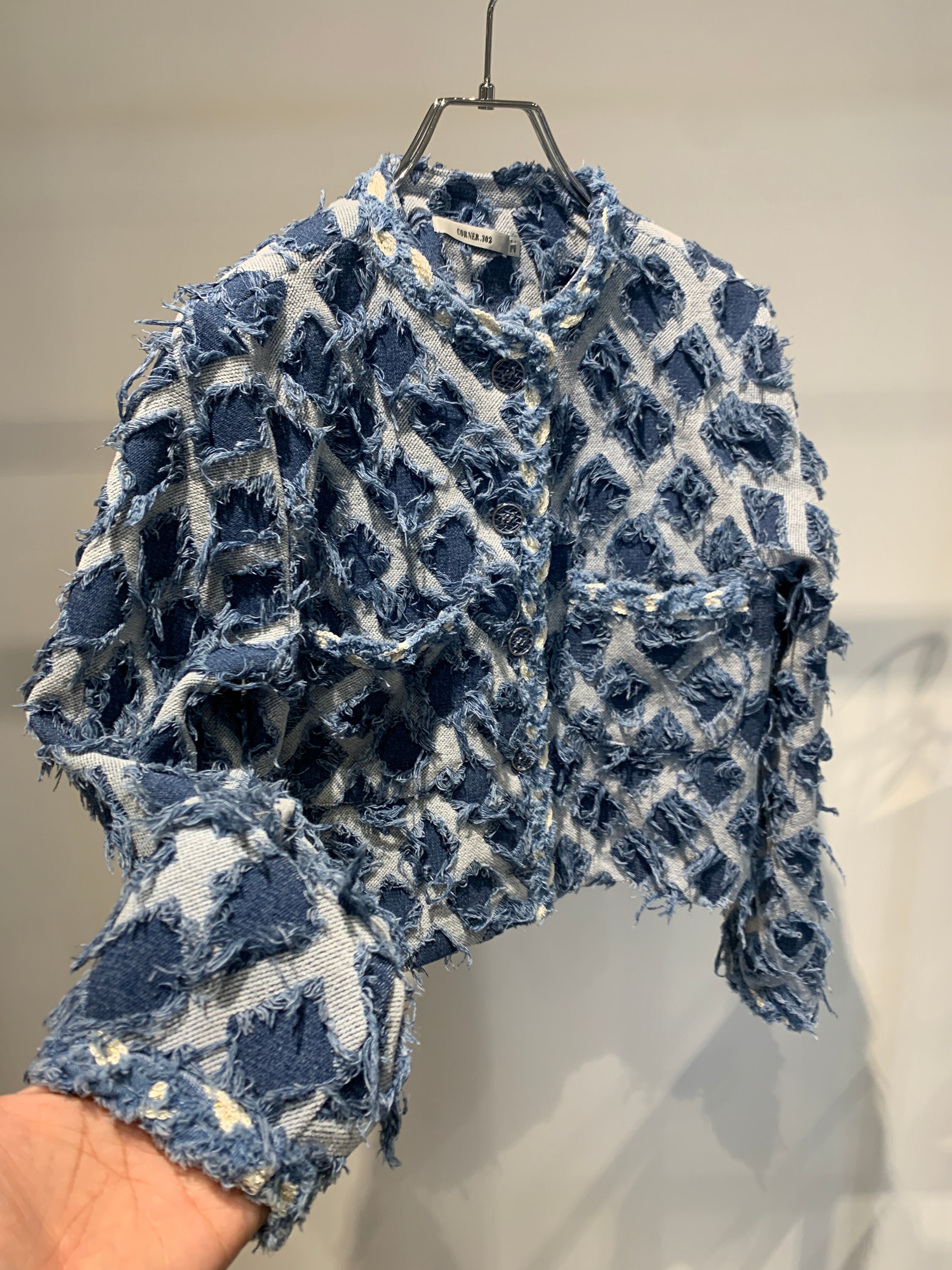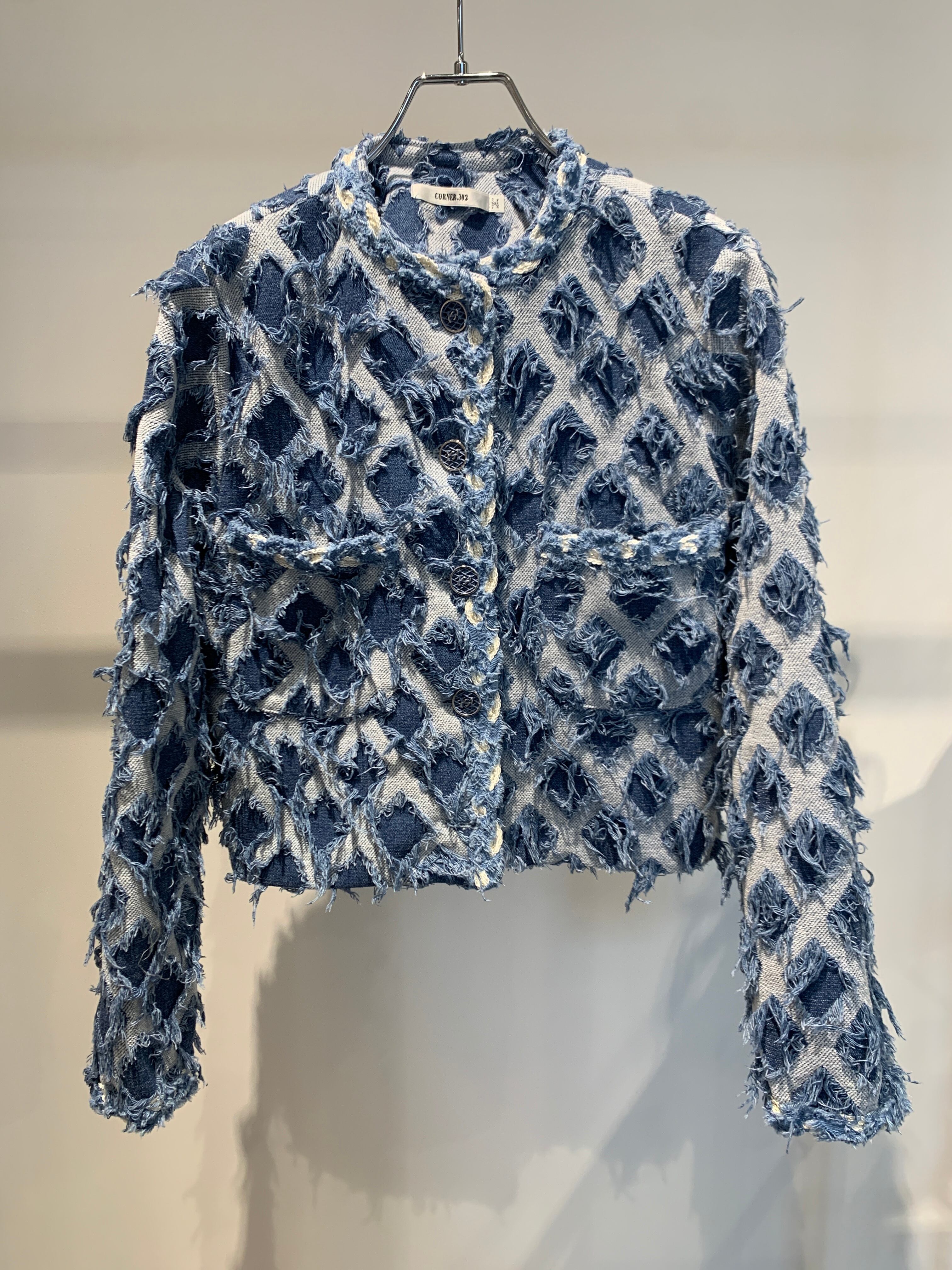 diamond pattern lace trim denim jacket