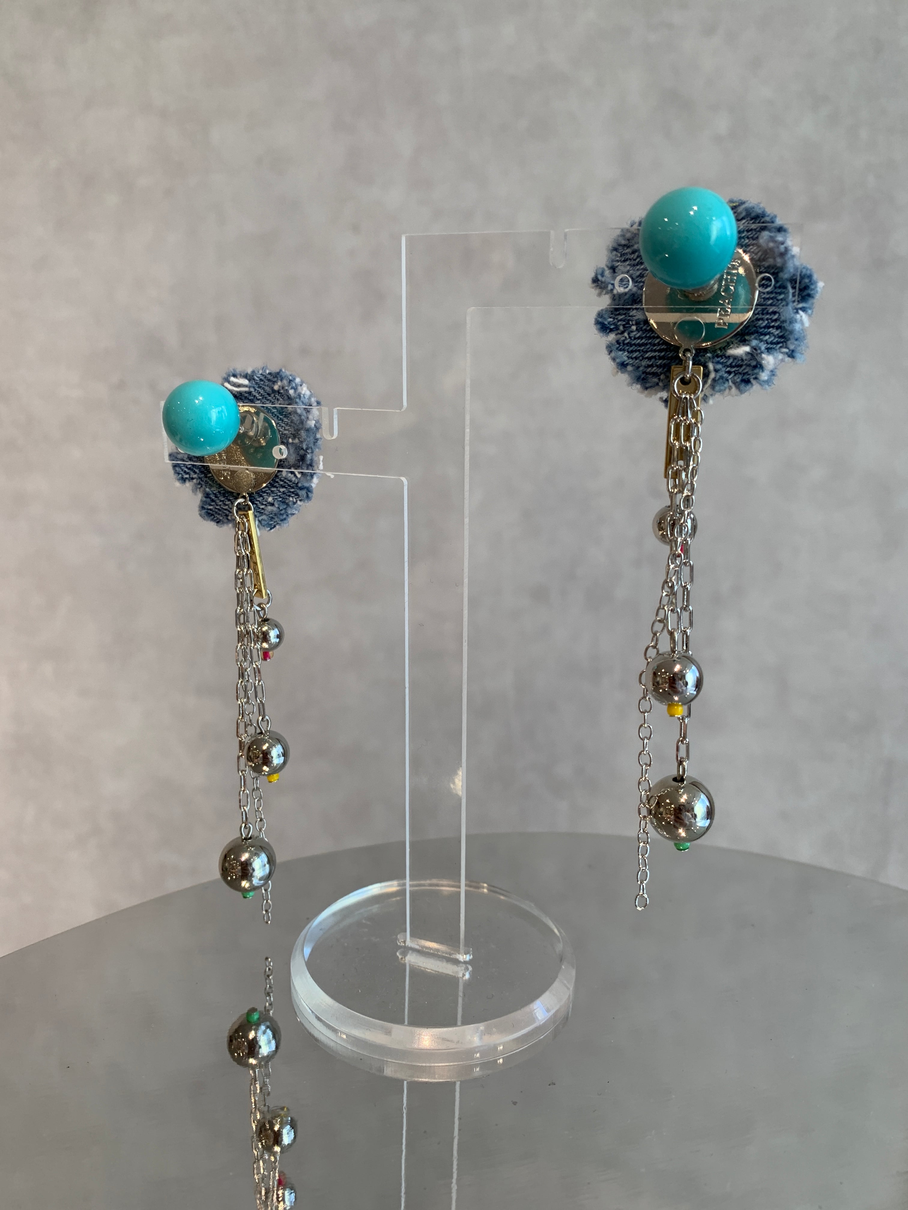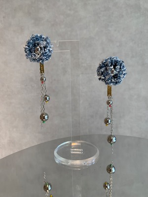 denim flower silver chain ball drop