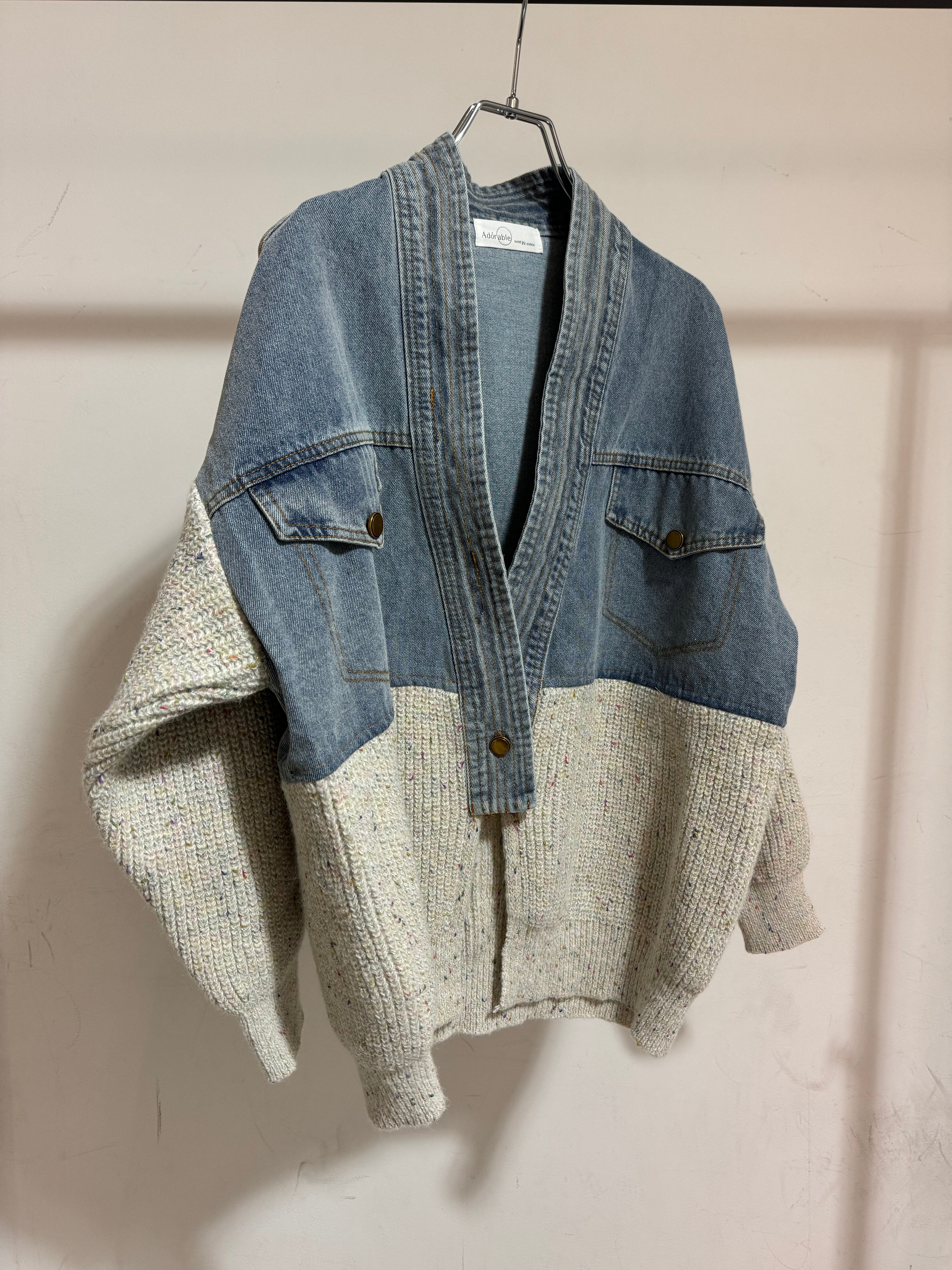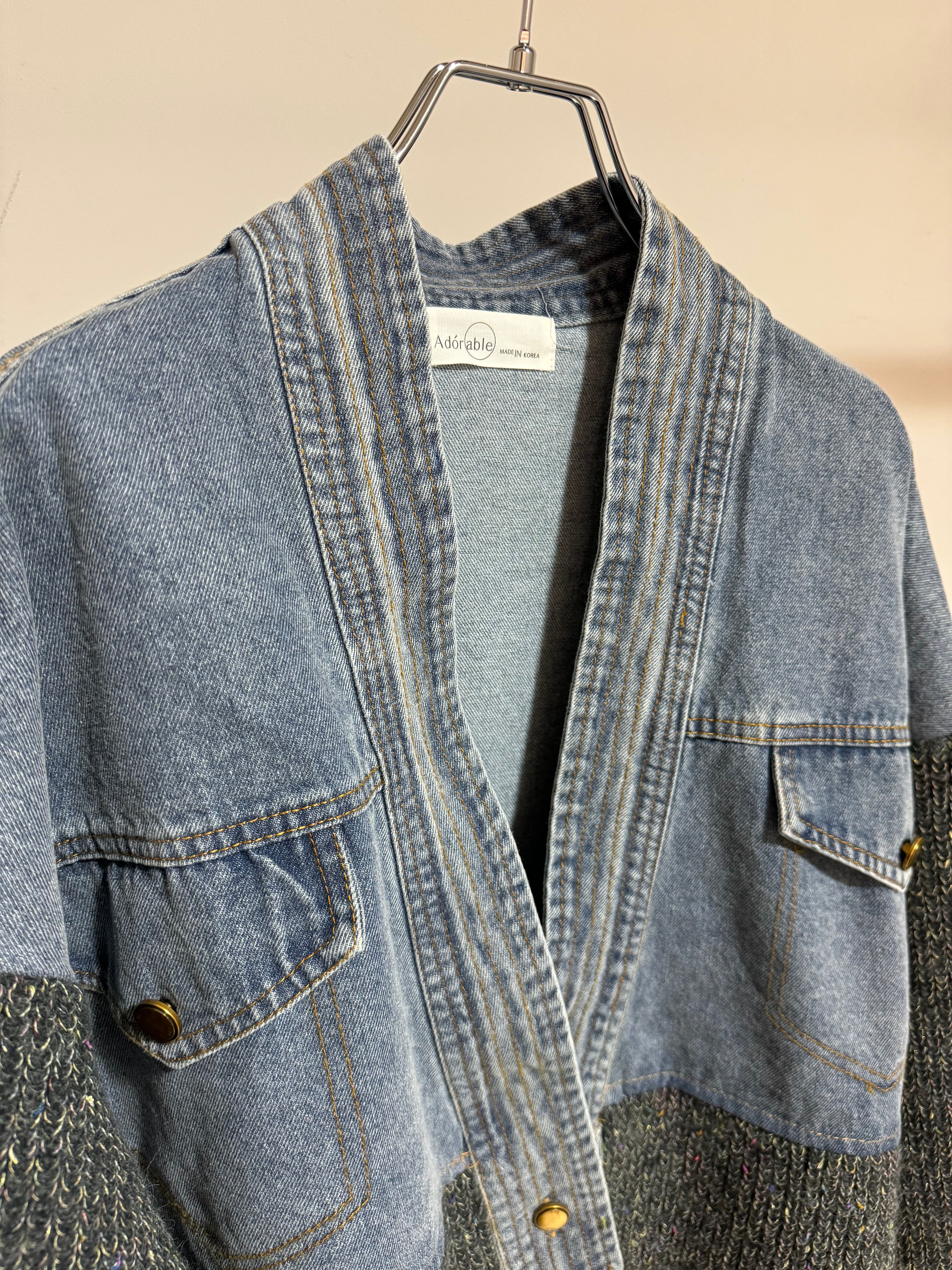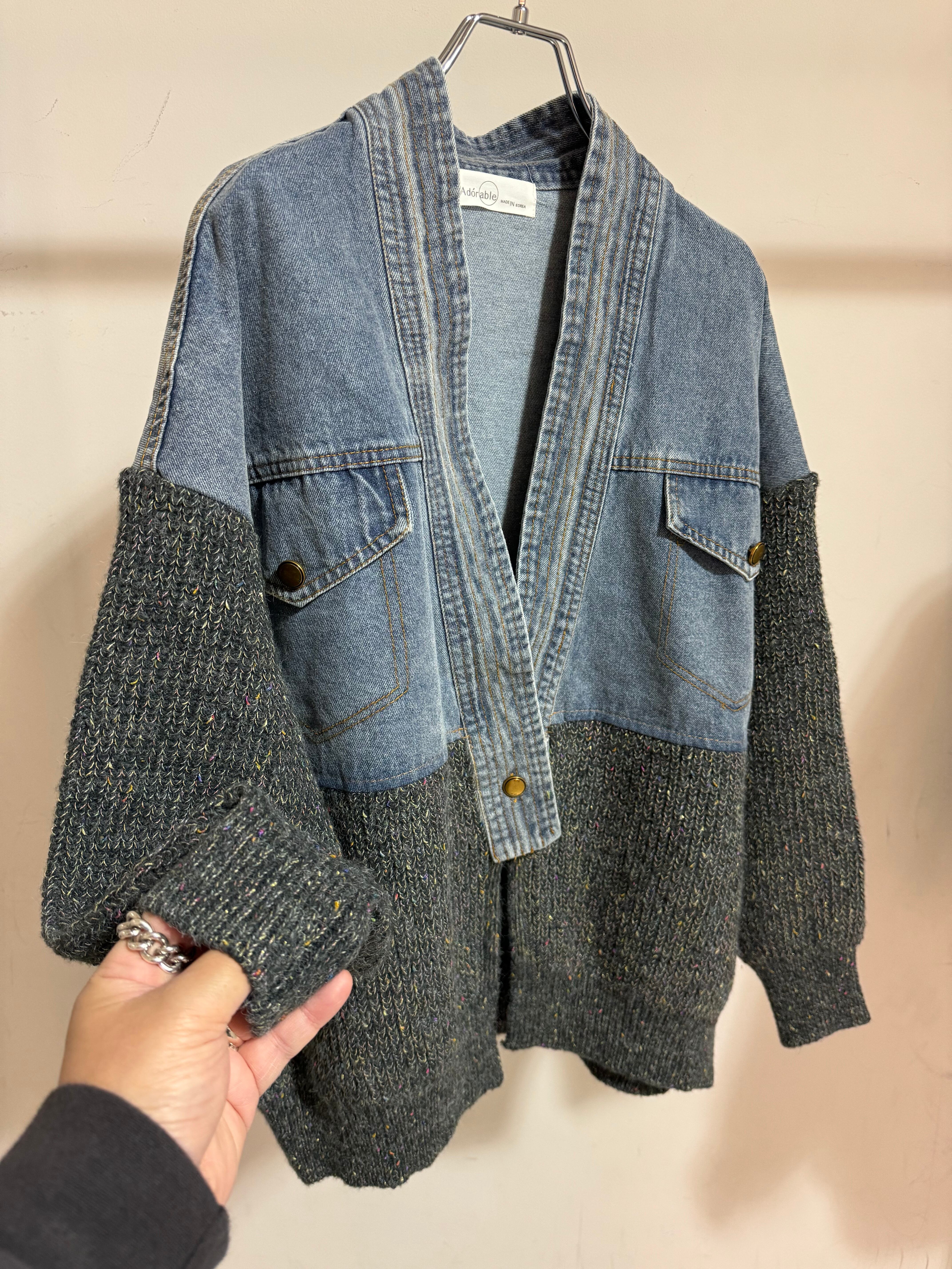 mix knit docking denim cardigan jacket