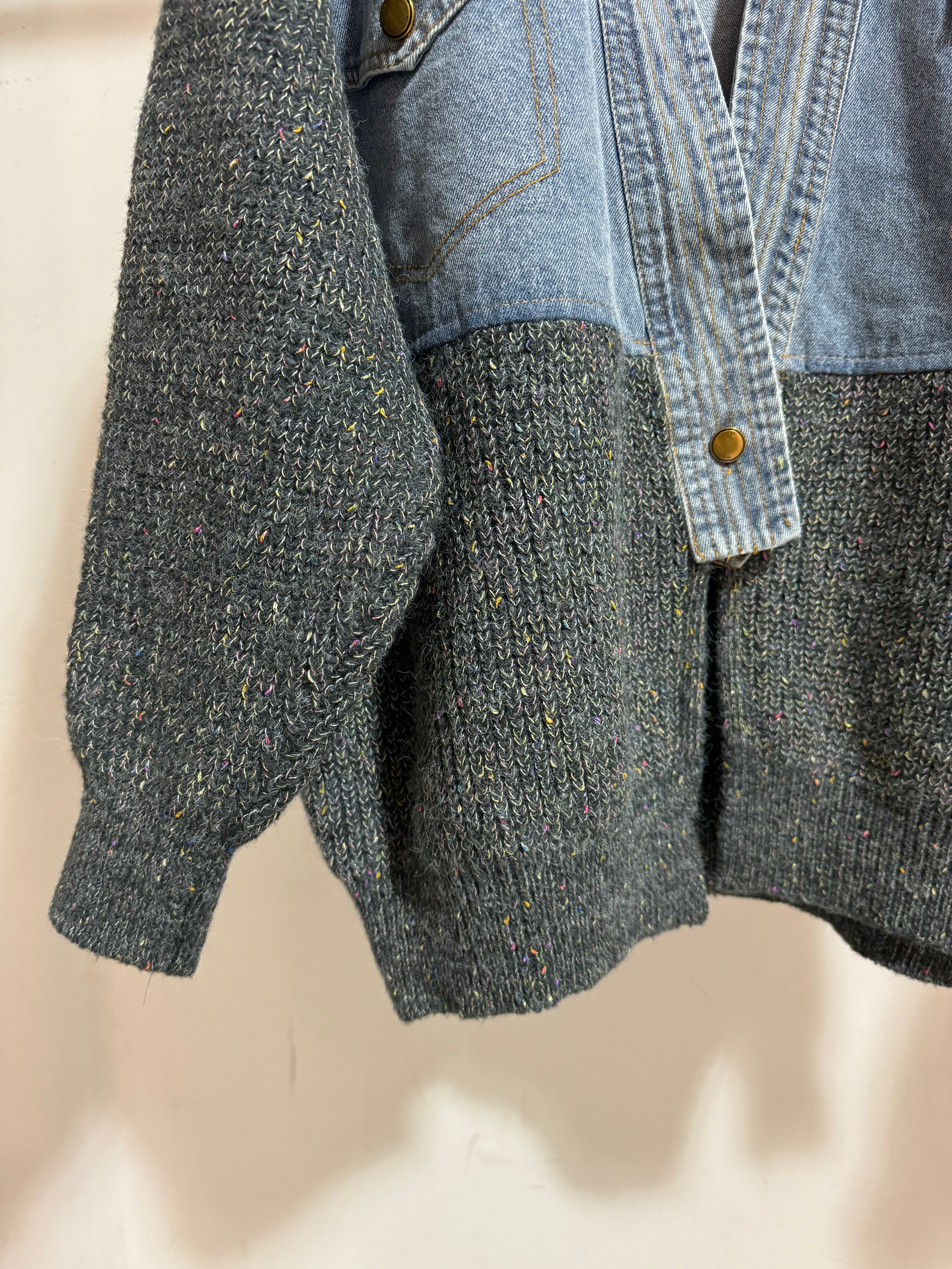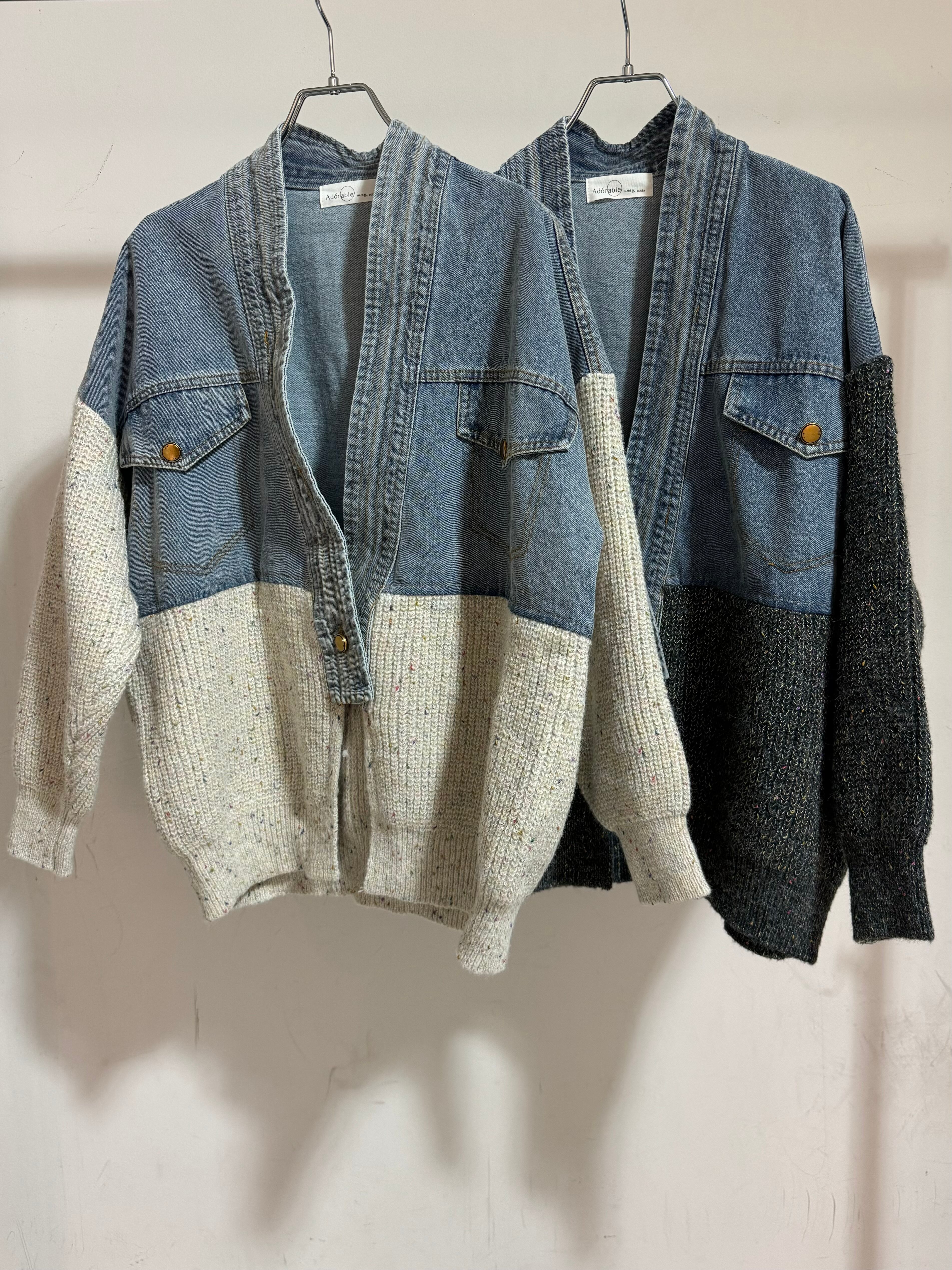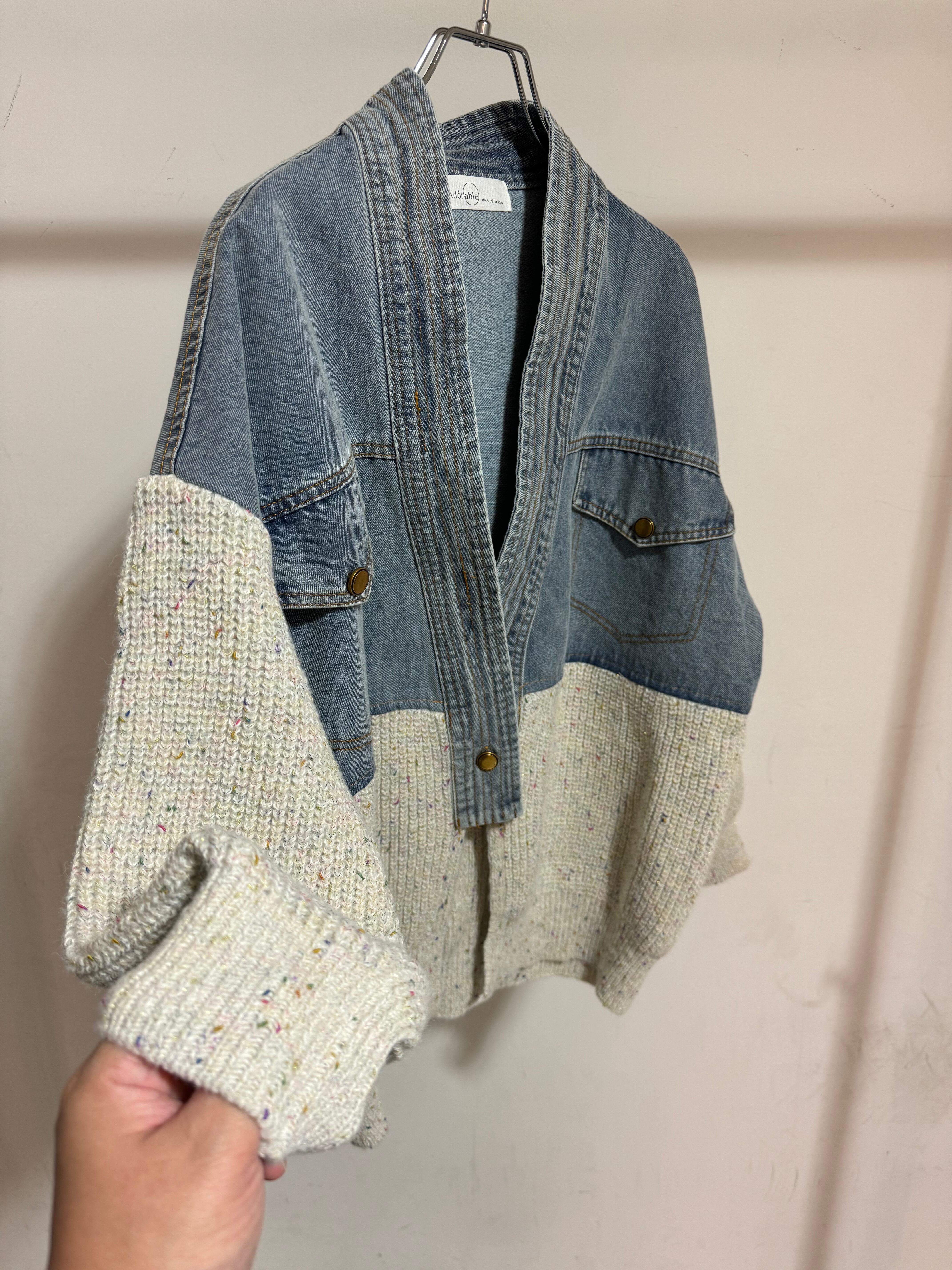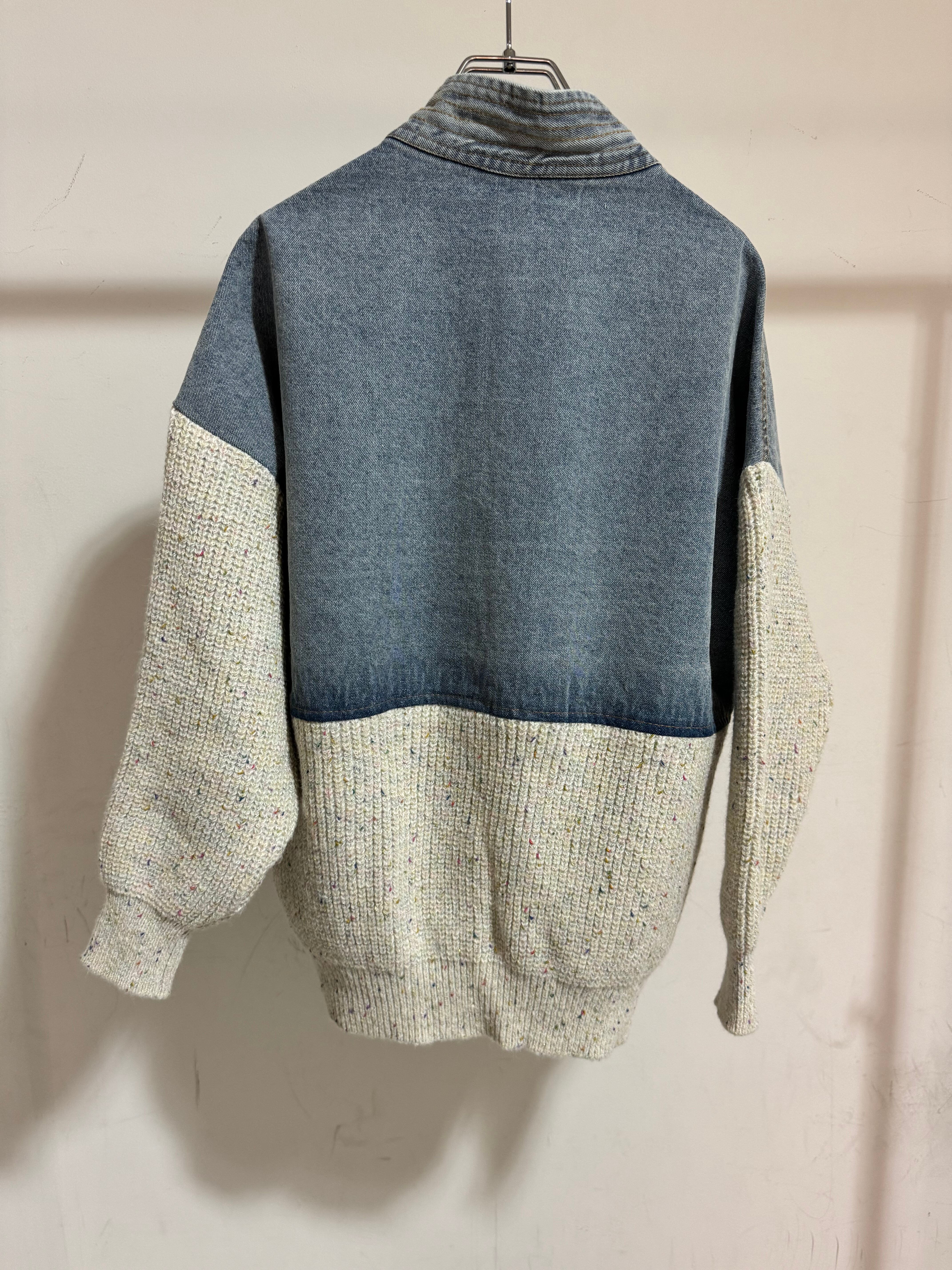 mix knit docking denim cardigan jacket