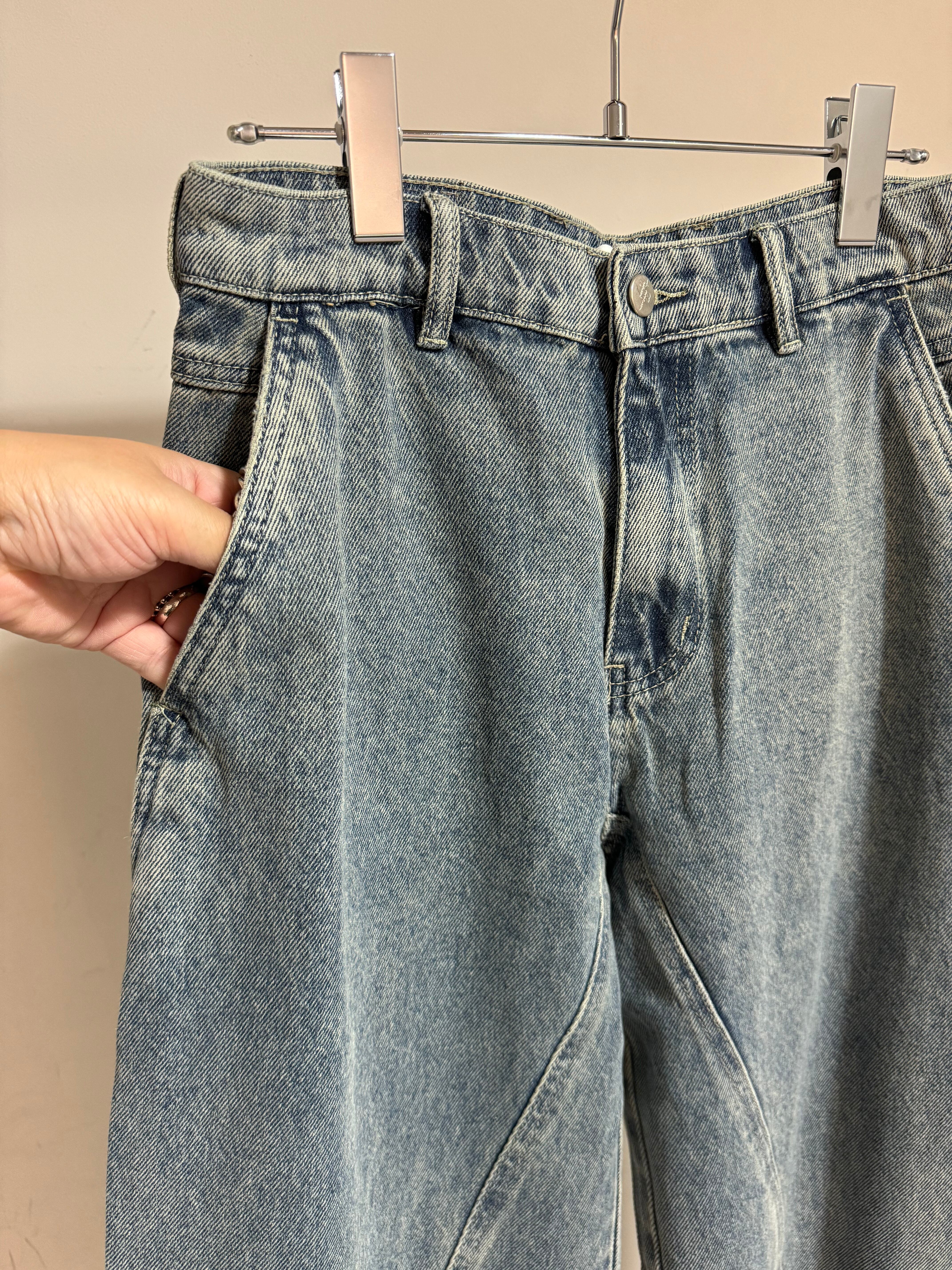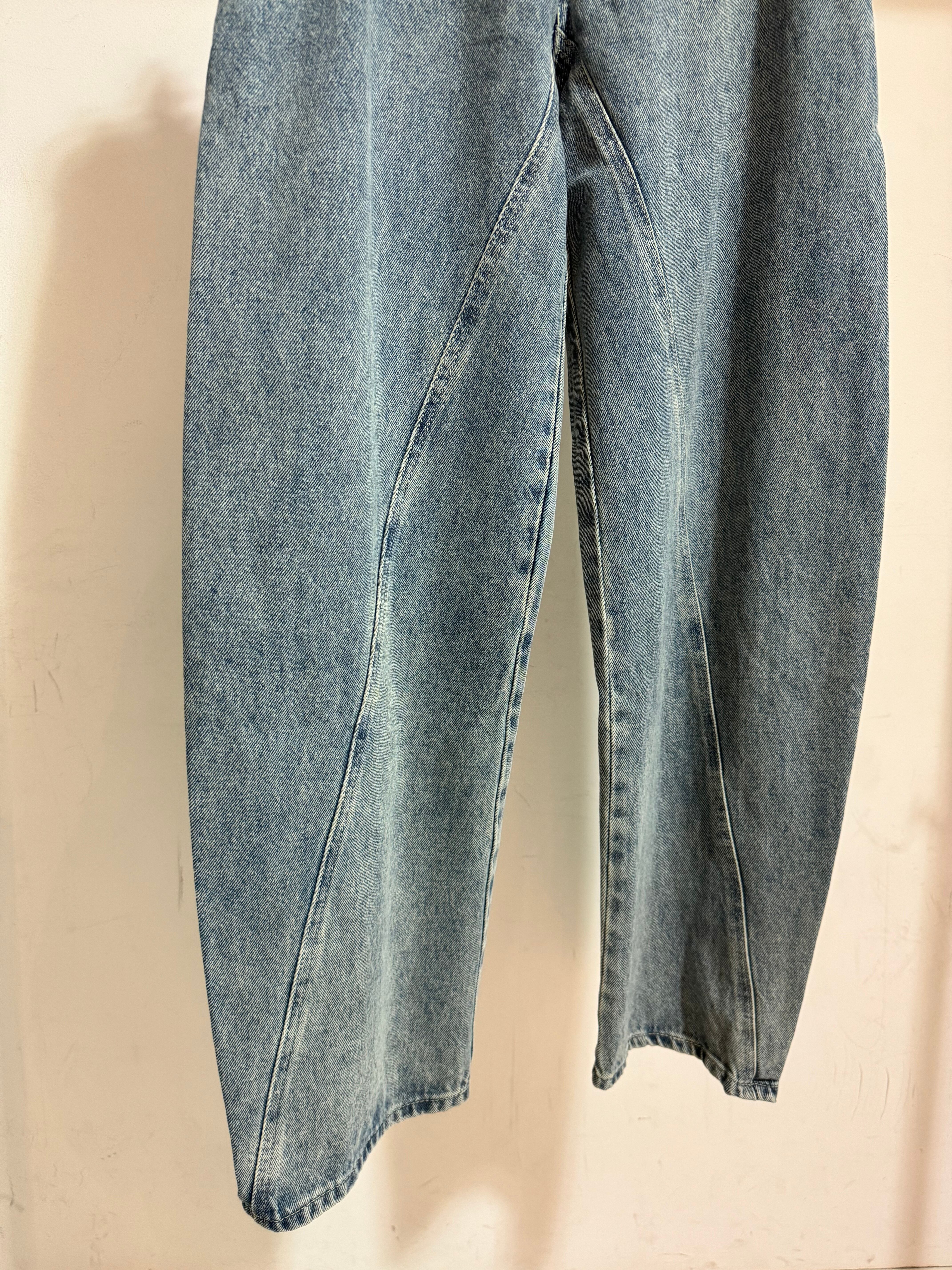 barrel leg switching denim pants