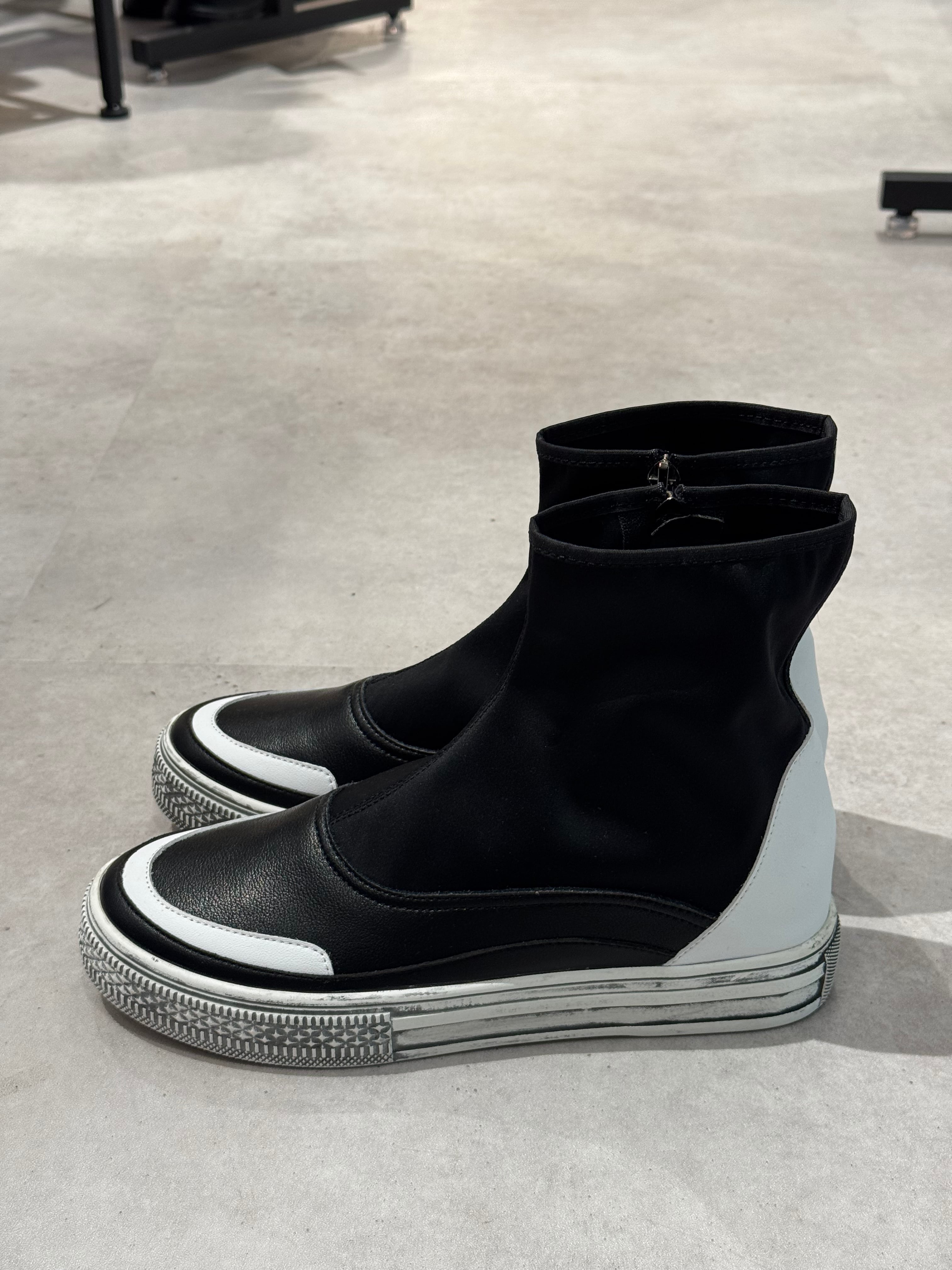 leather stretch sneaker boots