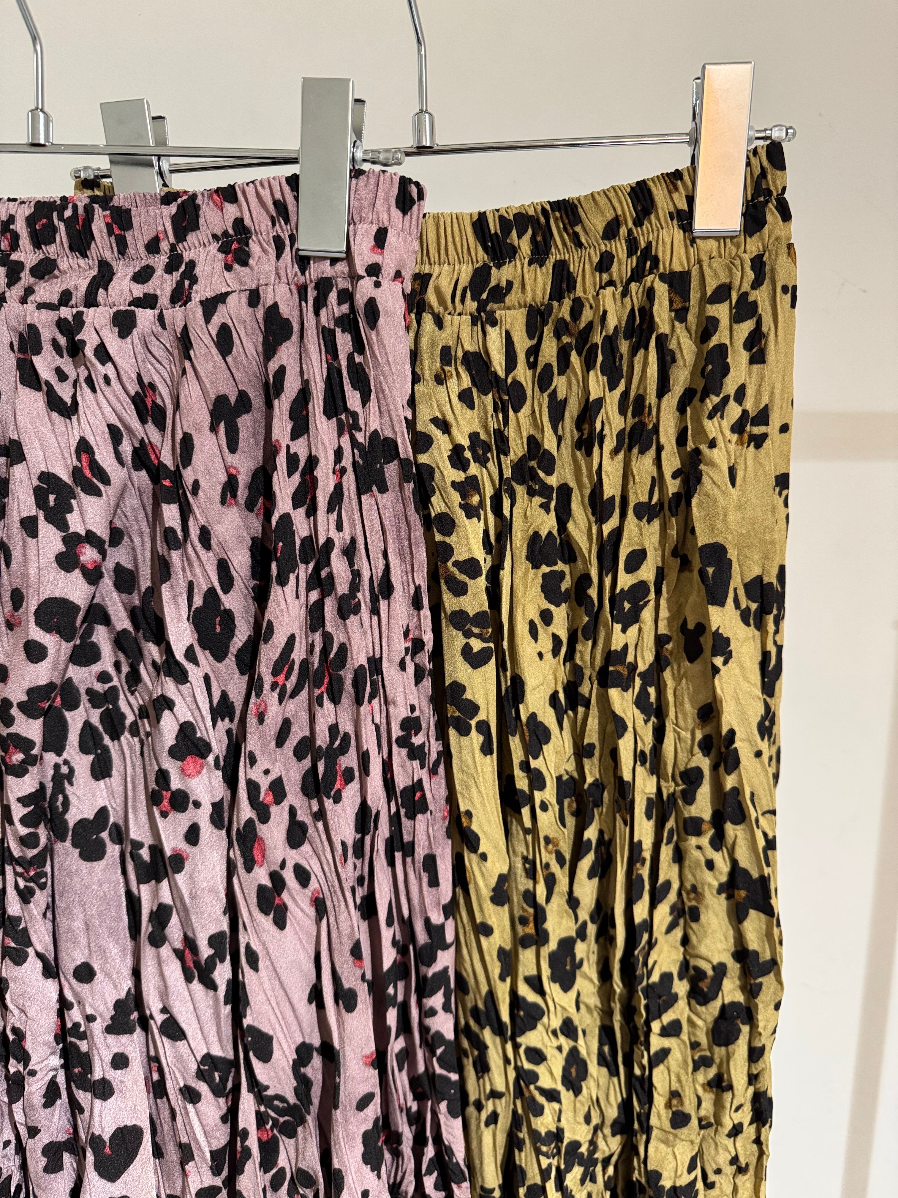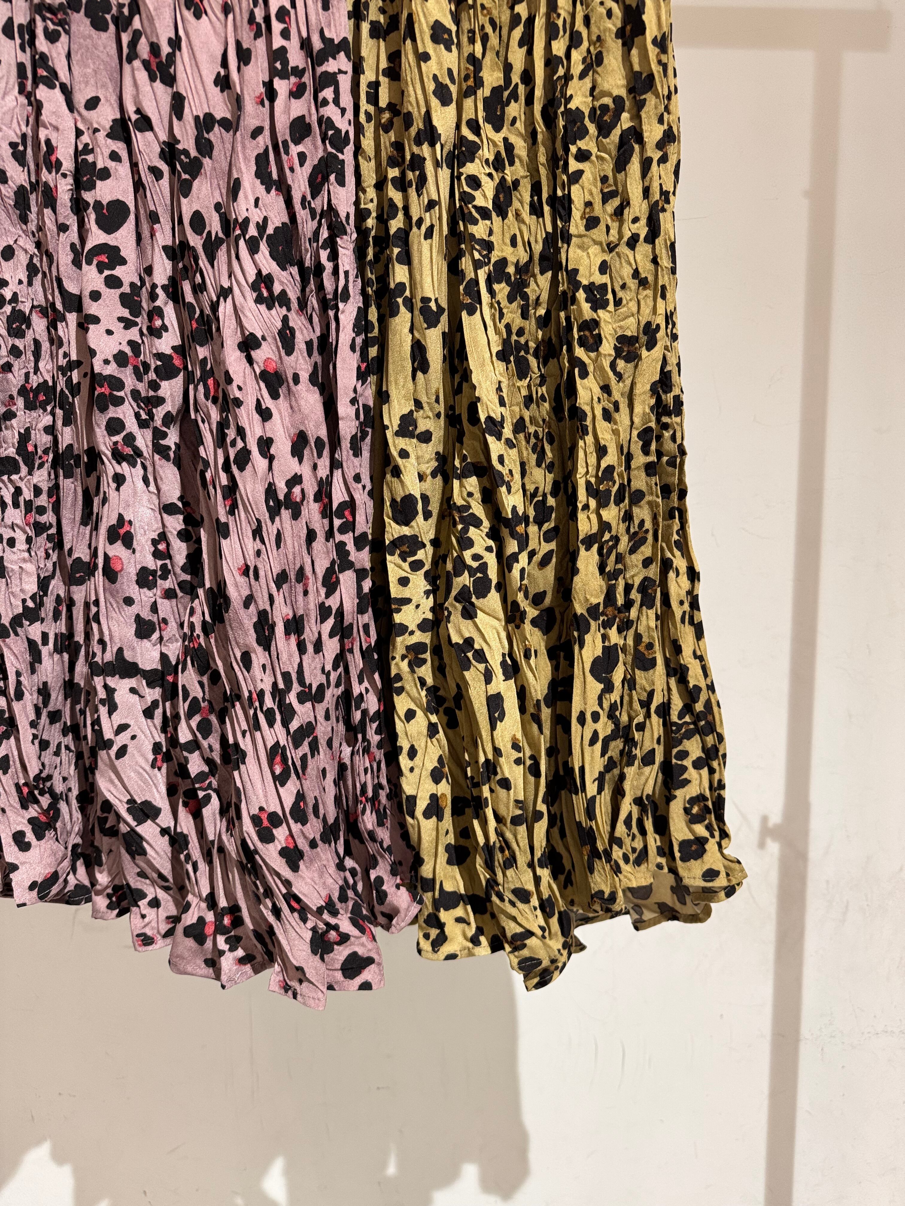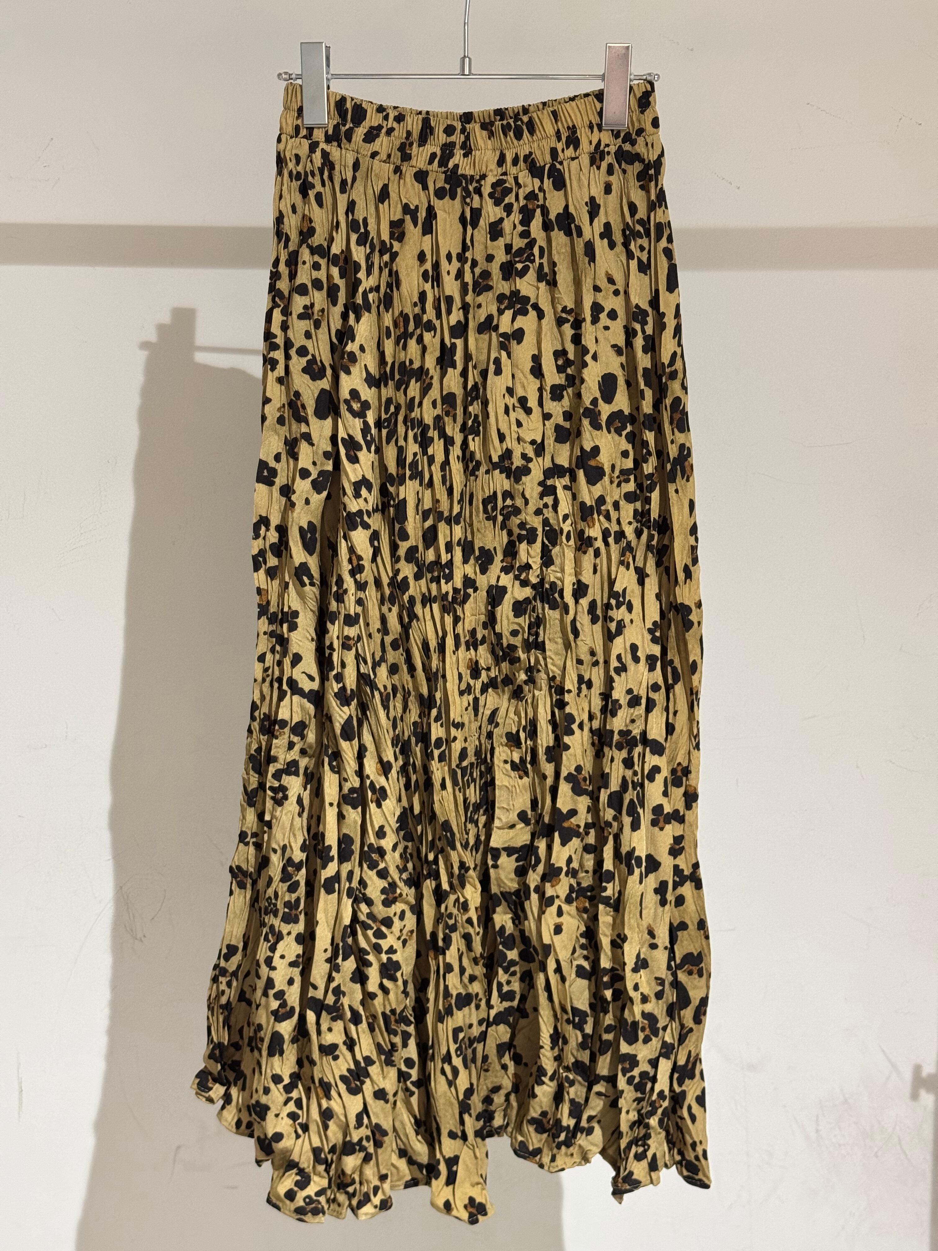 crinkle pleats leopard skirt