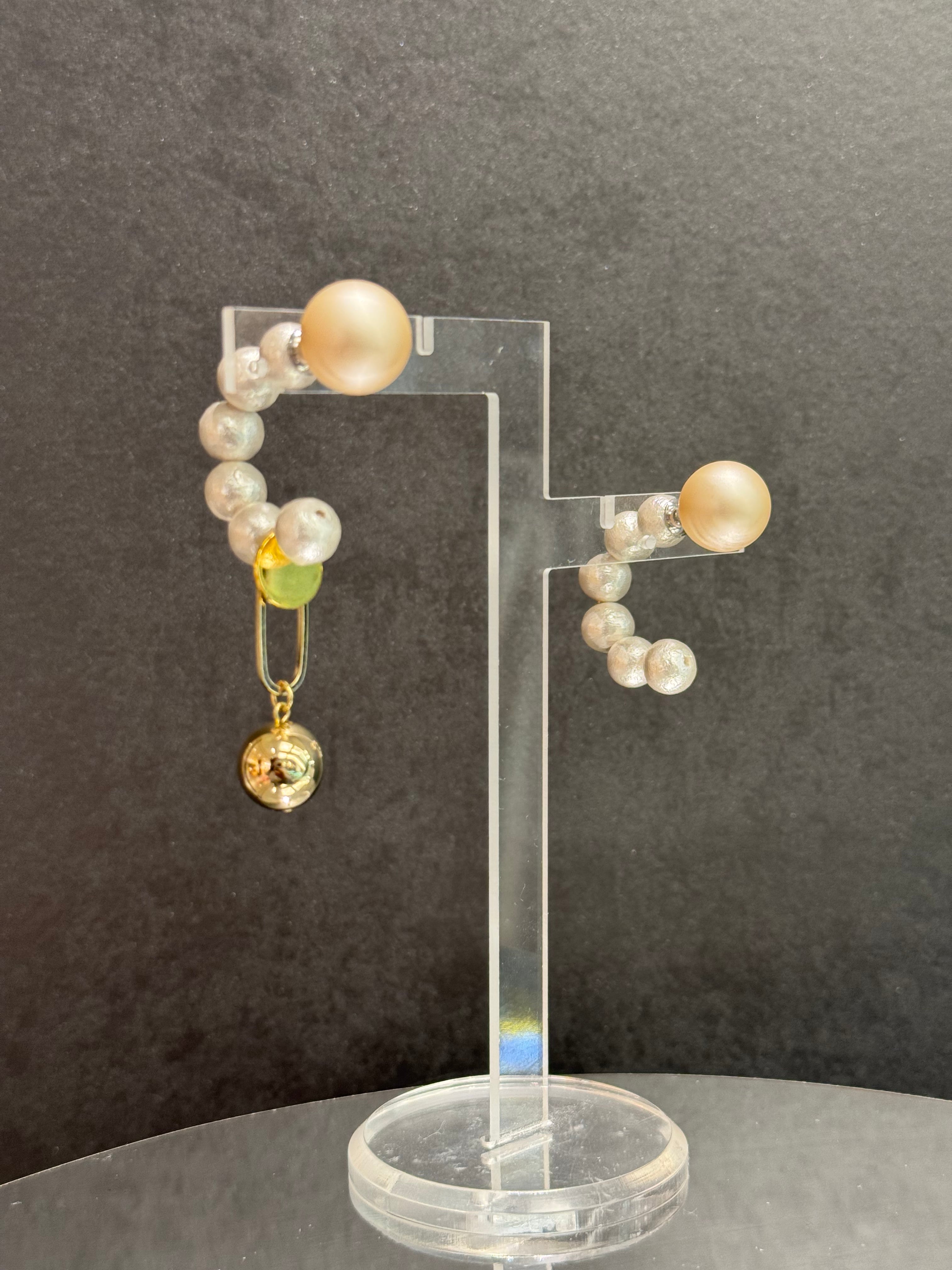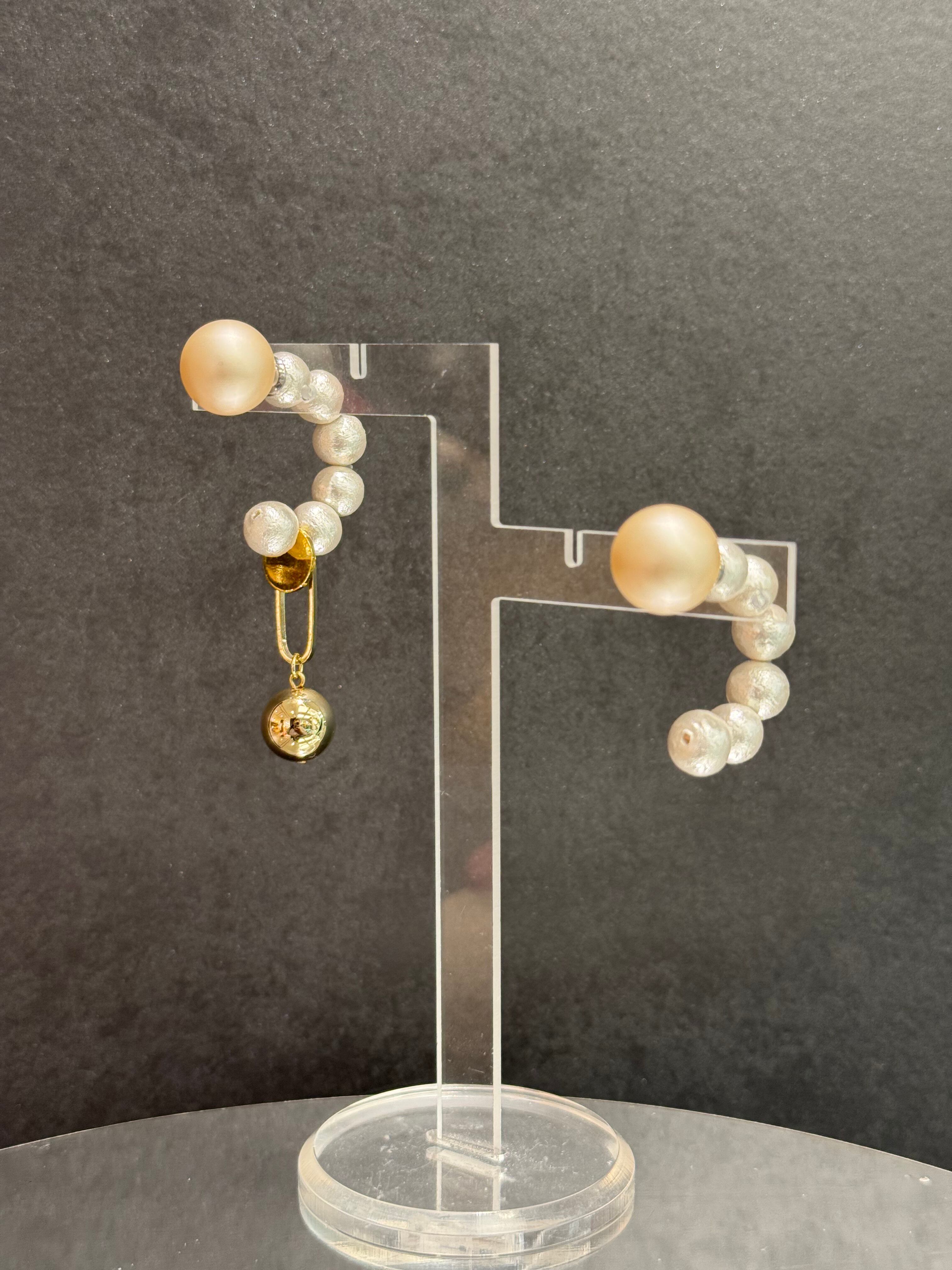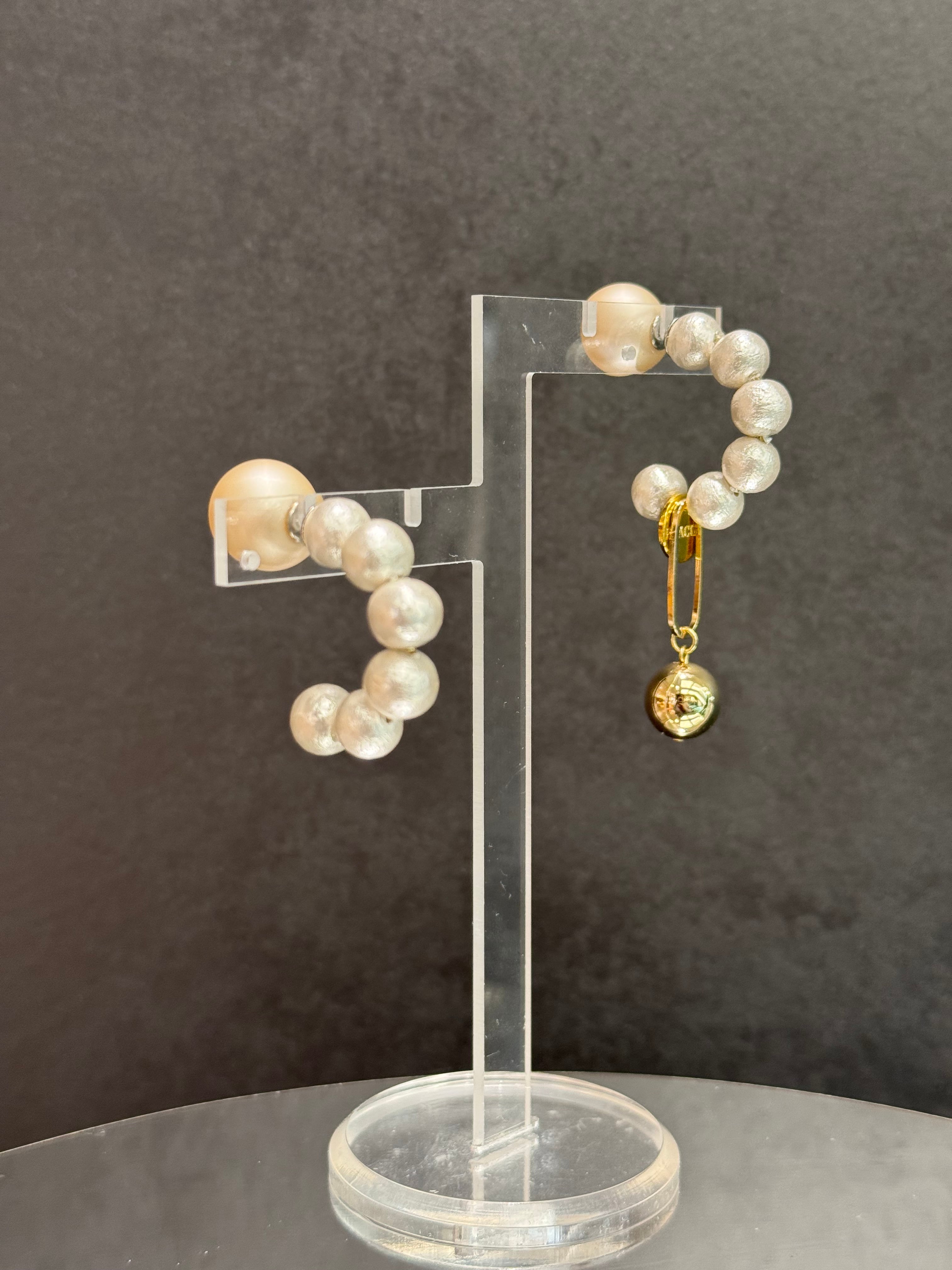 half hoop cotton pearl circle gold drop asymmetry