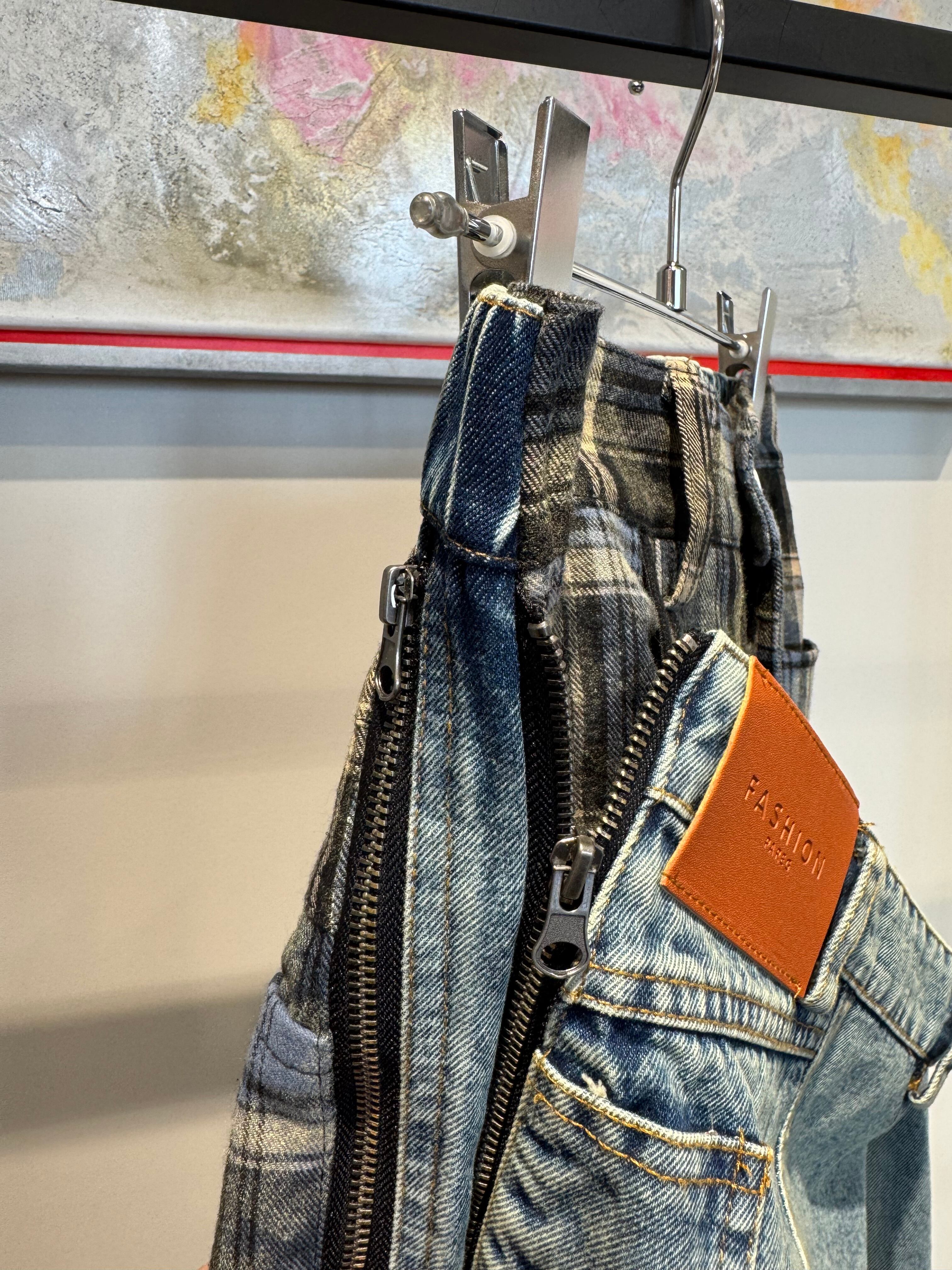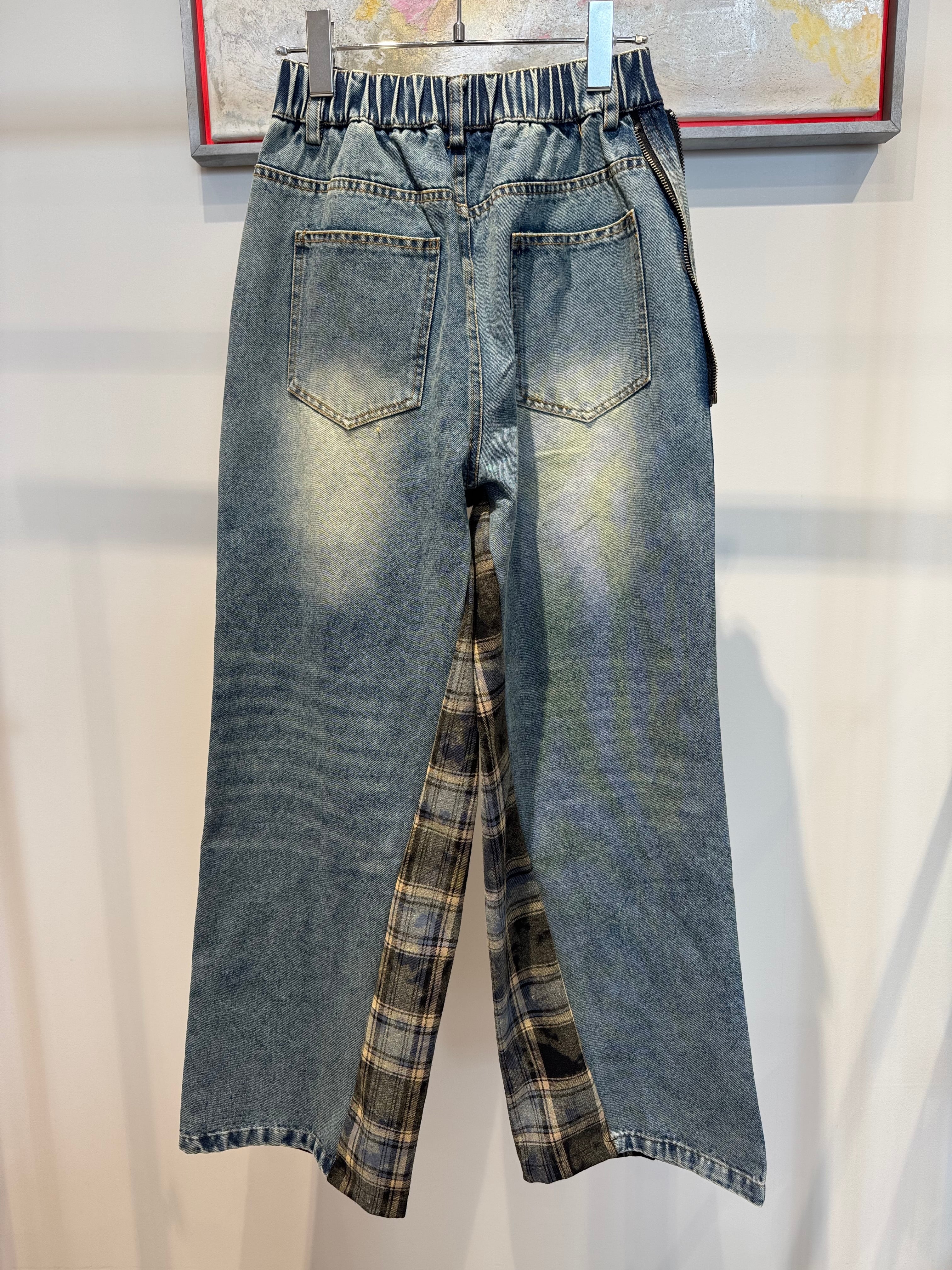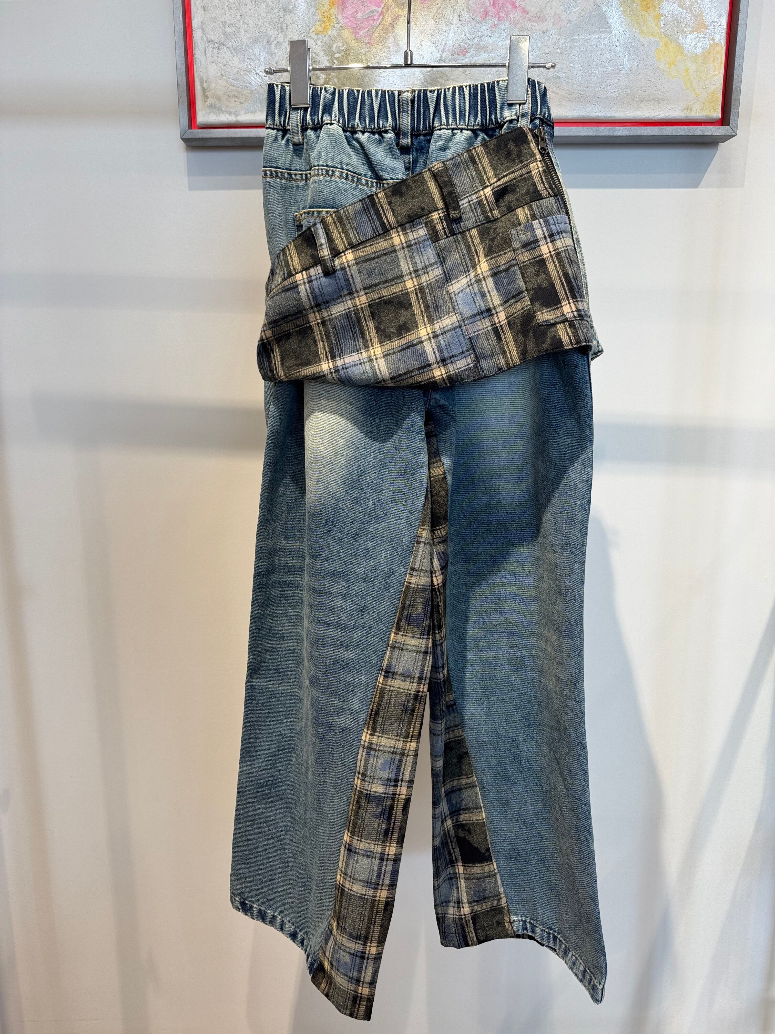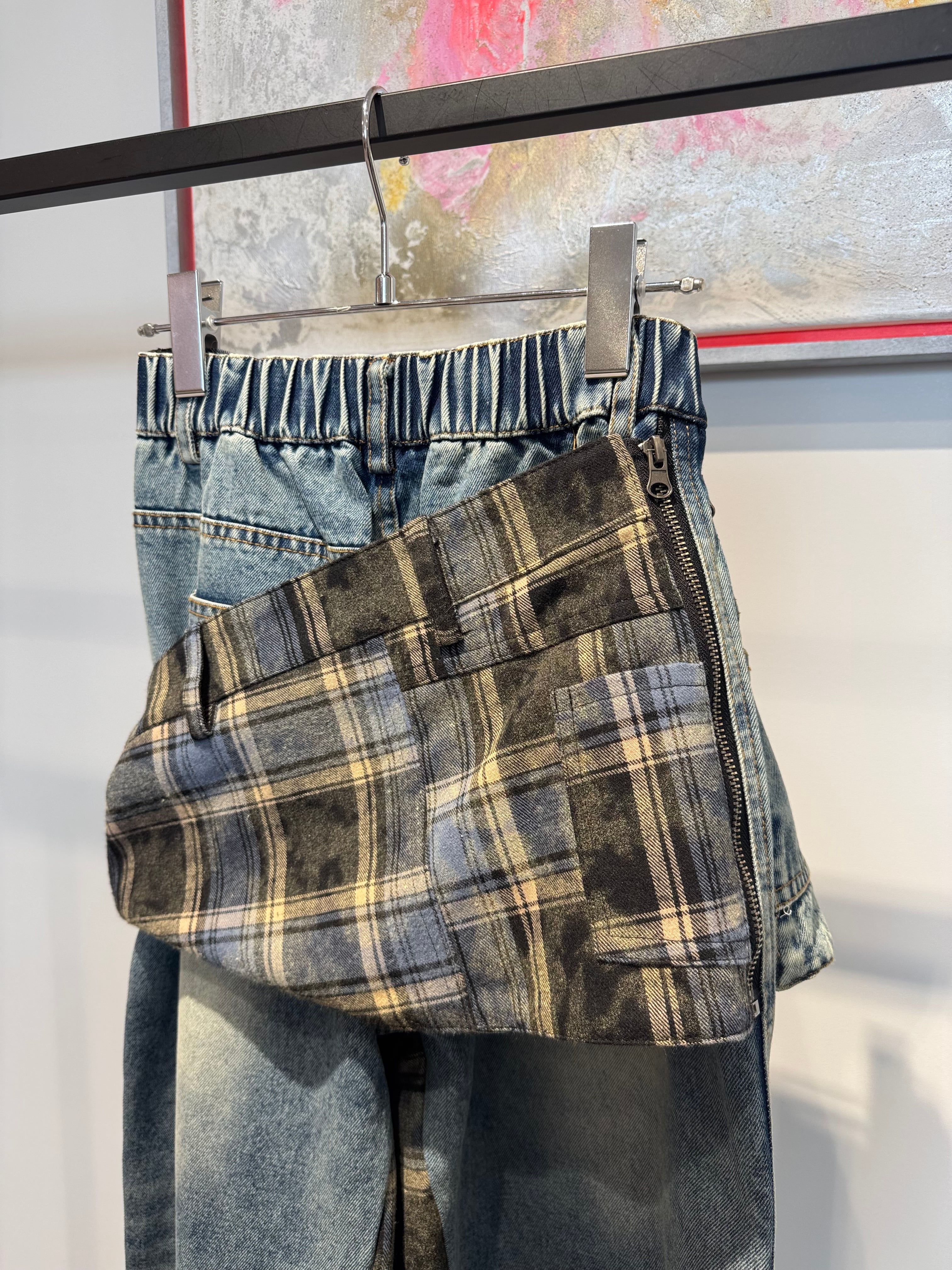 2way flannel shirt docking design denim