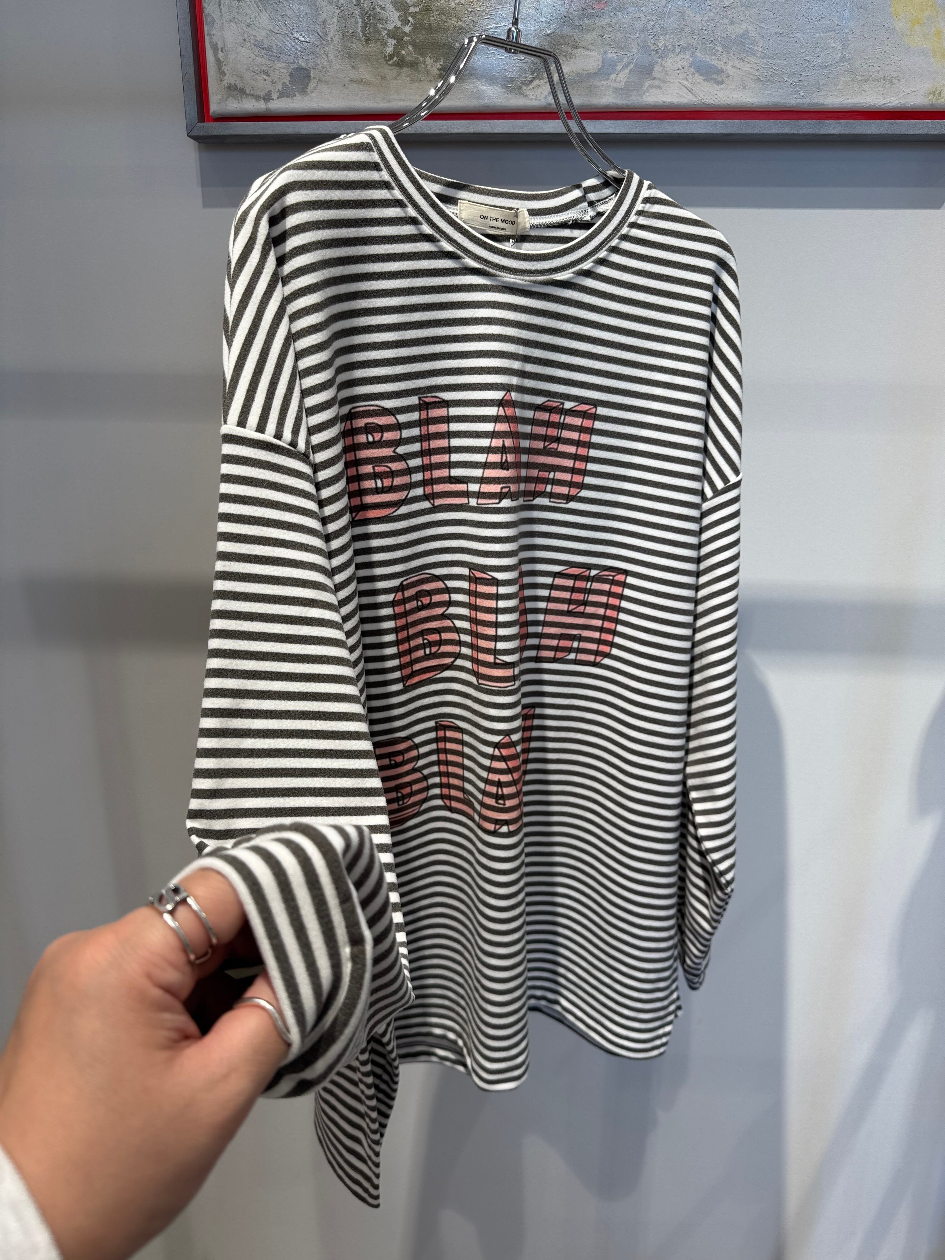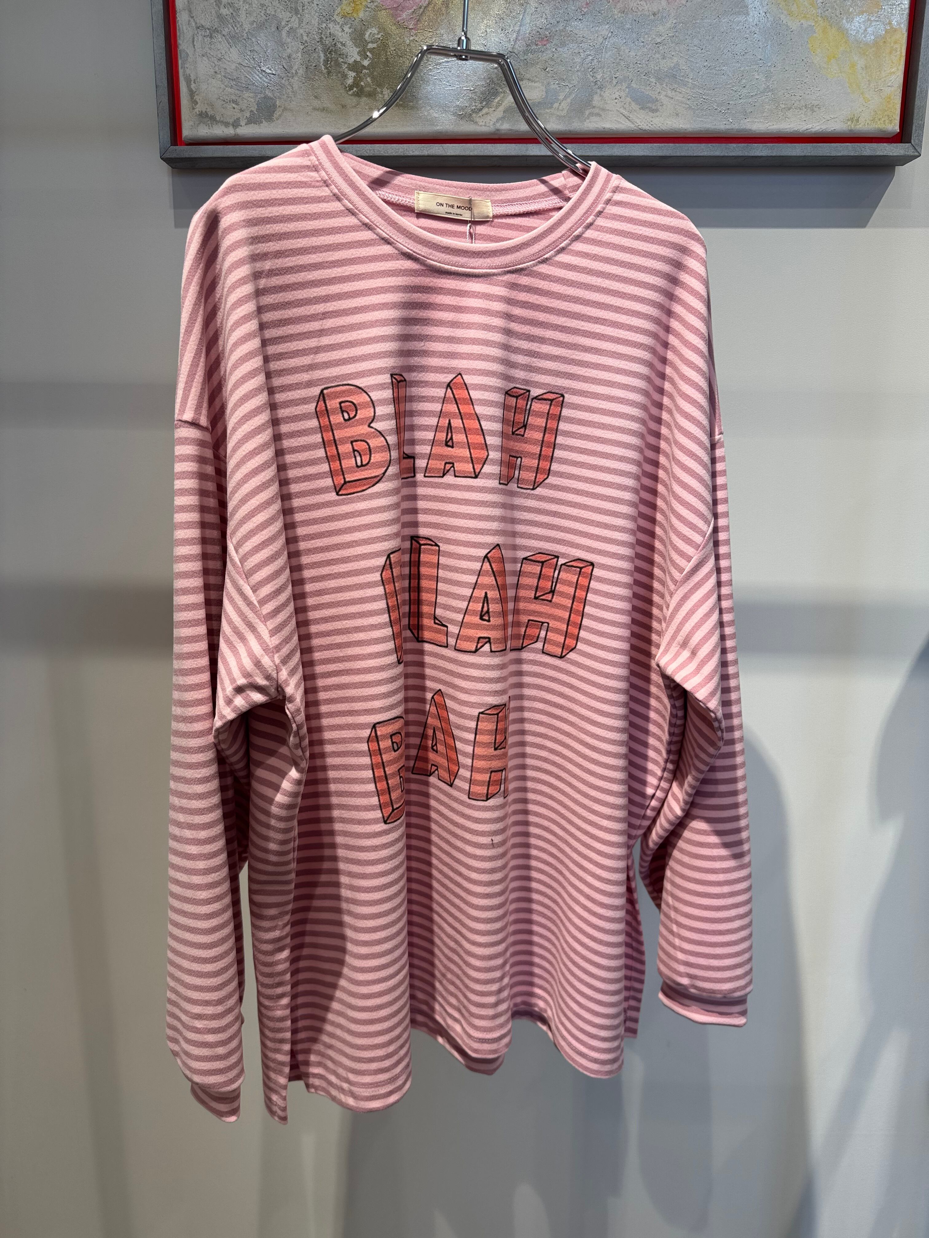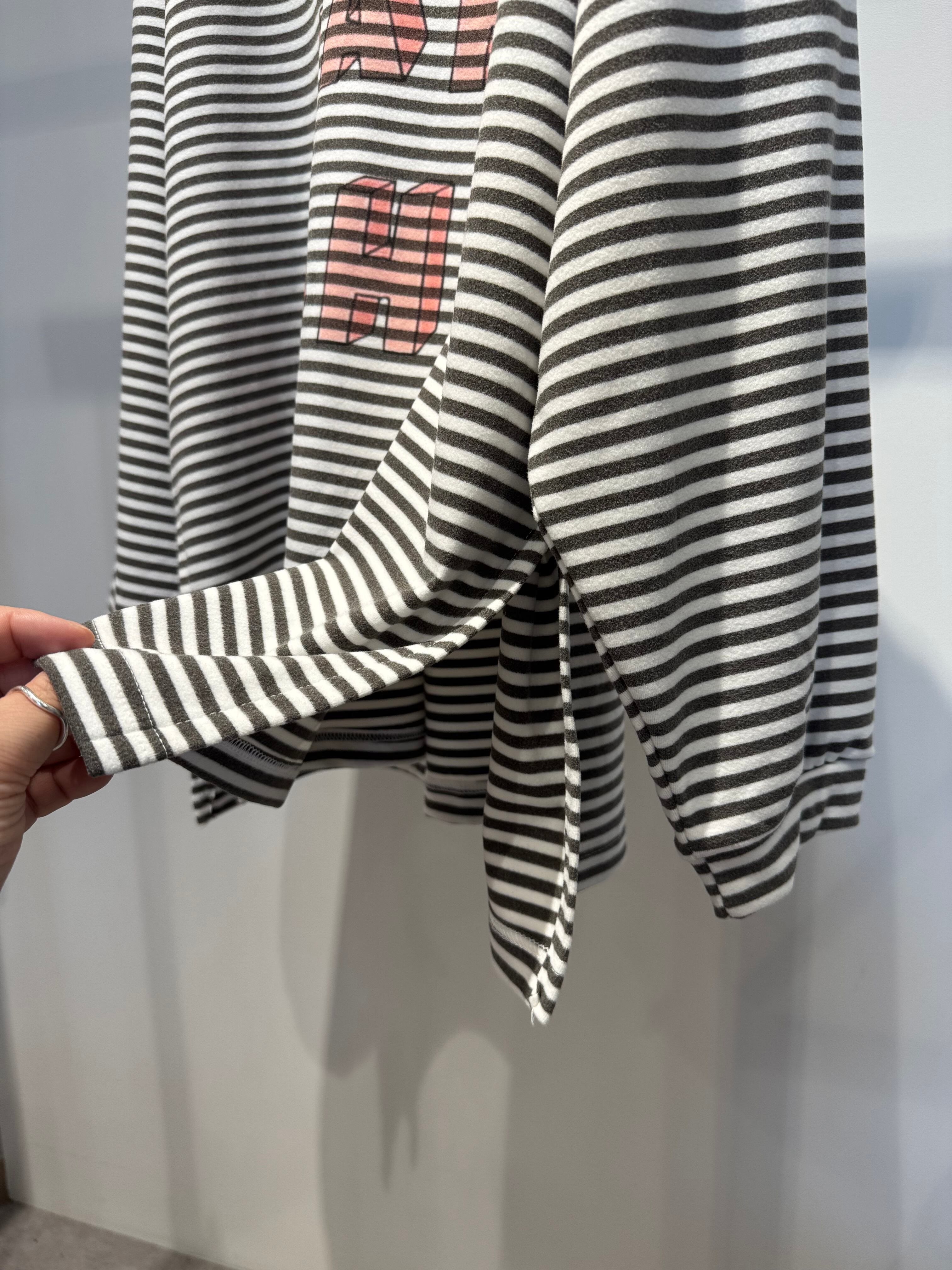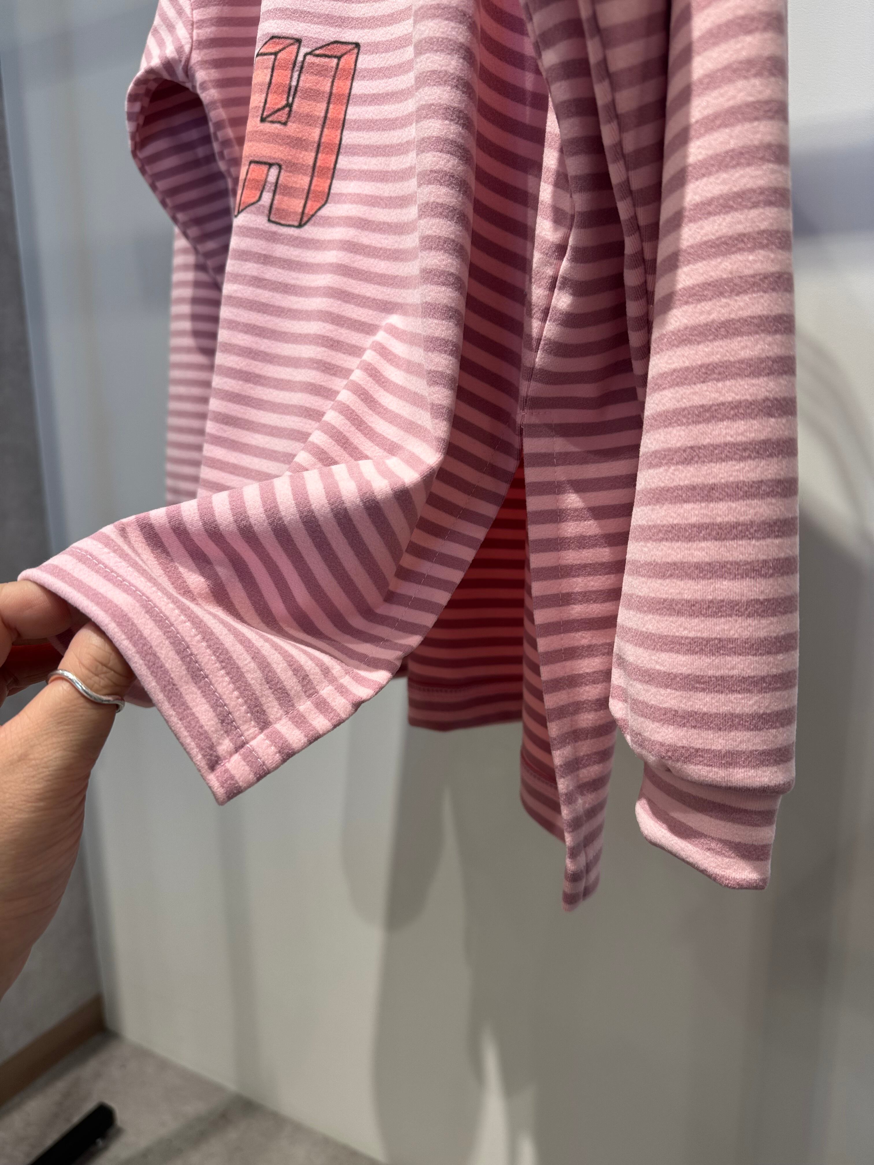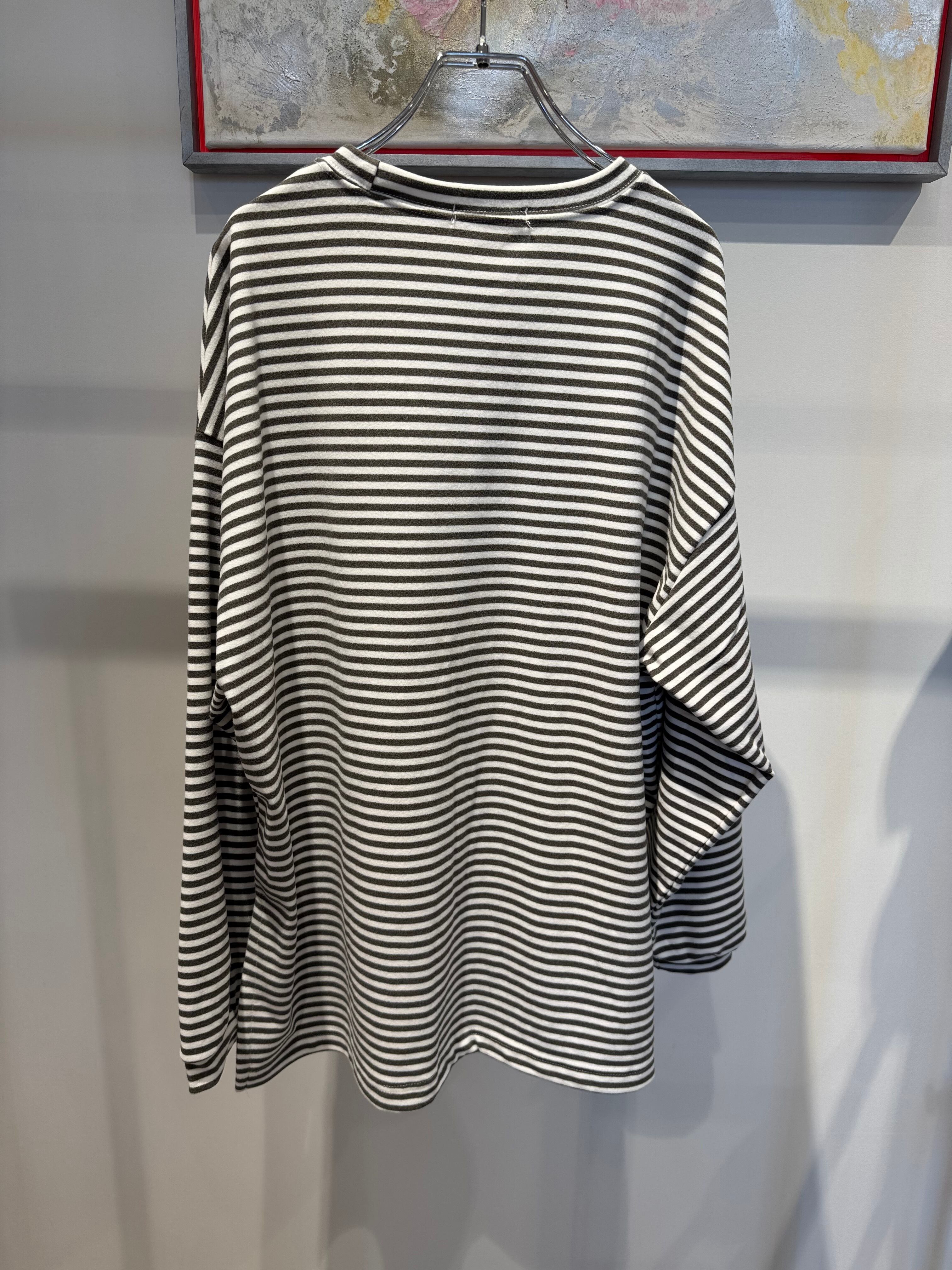 micro fleece border logo side slit long T-shirt